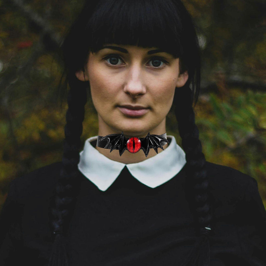 Punk Style Bat Charm PU Choker Necklace Halloween Party Devil Eyes Collar Necklace for Women Men Bat Wing Clavicle Necklace