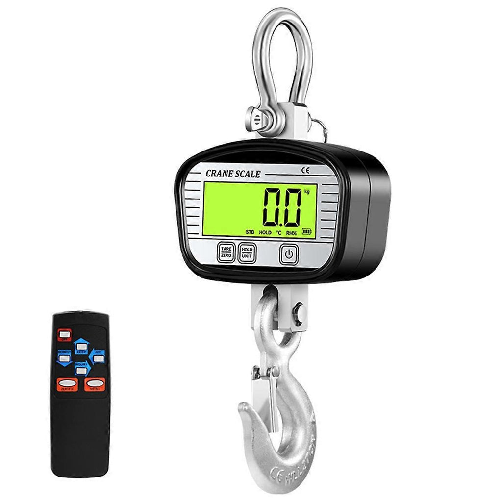 1000kg Digital Crane Scales 0.1kg LCD Industrial Grade Heavy Duty Hook Scale Them Hygrometer Hold Weighing Meter Black