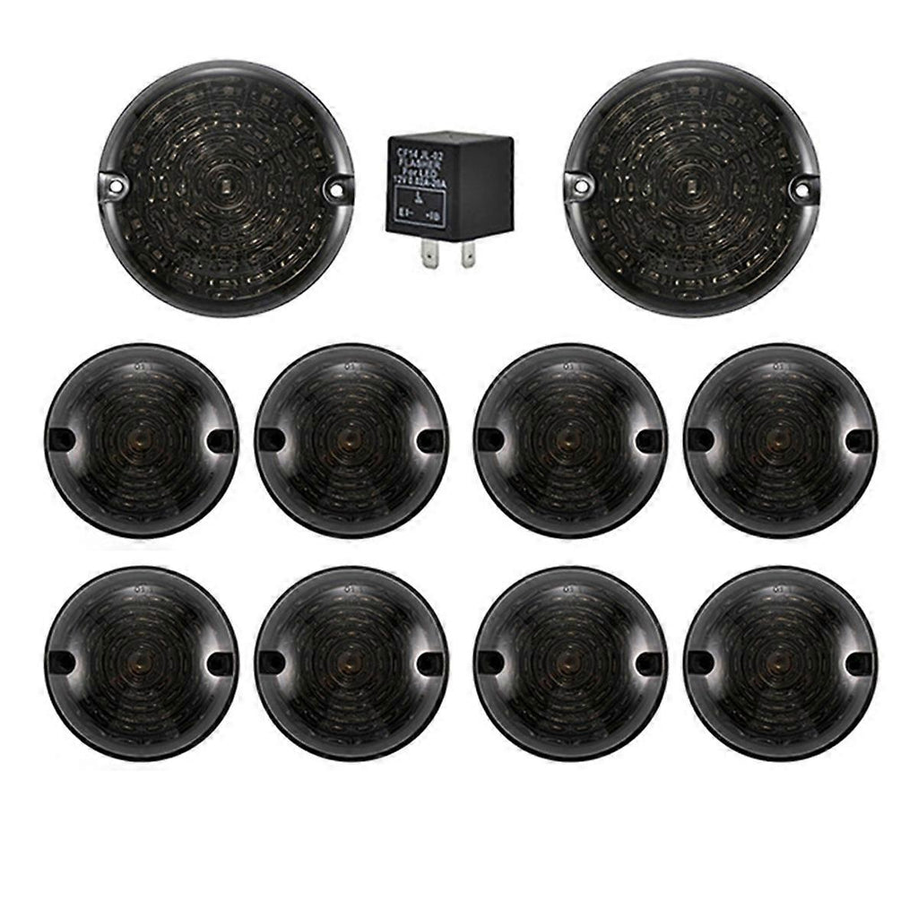 95MM diameter (reversing lights/reversing lights, rear fog lights) 73MM diameter (front and rear indicator lights, rear stop/tail lights, front position lights) 33 Premium White SMD LEDs for Rear Backup Lights, 33 Premium Red SMD LEDs for Rear Fog Lights, 21 Premium Amber/White/Red SMD LEDs for Indicator/Position/Tail Lights. case with scratch lens. Plug and play, easy installation. Name:Modified light Light source:LED Sealed and waterproof, long service life. Brighter but lower power consumption. No errors, no warnings on the dashboard. Higher visibility and quick switch response your driving safety. More suitable for installation structure. Light uniformity with very bright lighting output. Fitment: Fit for 90/110 1983-1990 Fit for 1990-2016 Note: Installation guide not included, we strongly recommend you professional installation. Please check as much as possible to make sure the item is what you need. Tips:The product may be updated constantly ,Due To Different Batches, The Actual Product May Have Slight Differences Or Color Differences, Which Does Not Affect Use. Color:Smoky Color Material:ABS Package Contents: 10 * LED Light Only the above package content, other products are not included. Note: Light reflection and different displays may cause the color of the item in the picture a little different from the real thing. The measurement allowed error is +/- 1-3cm.