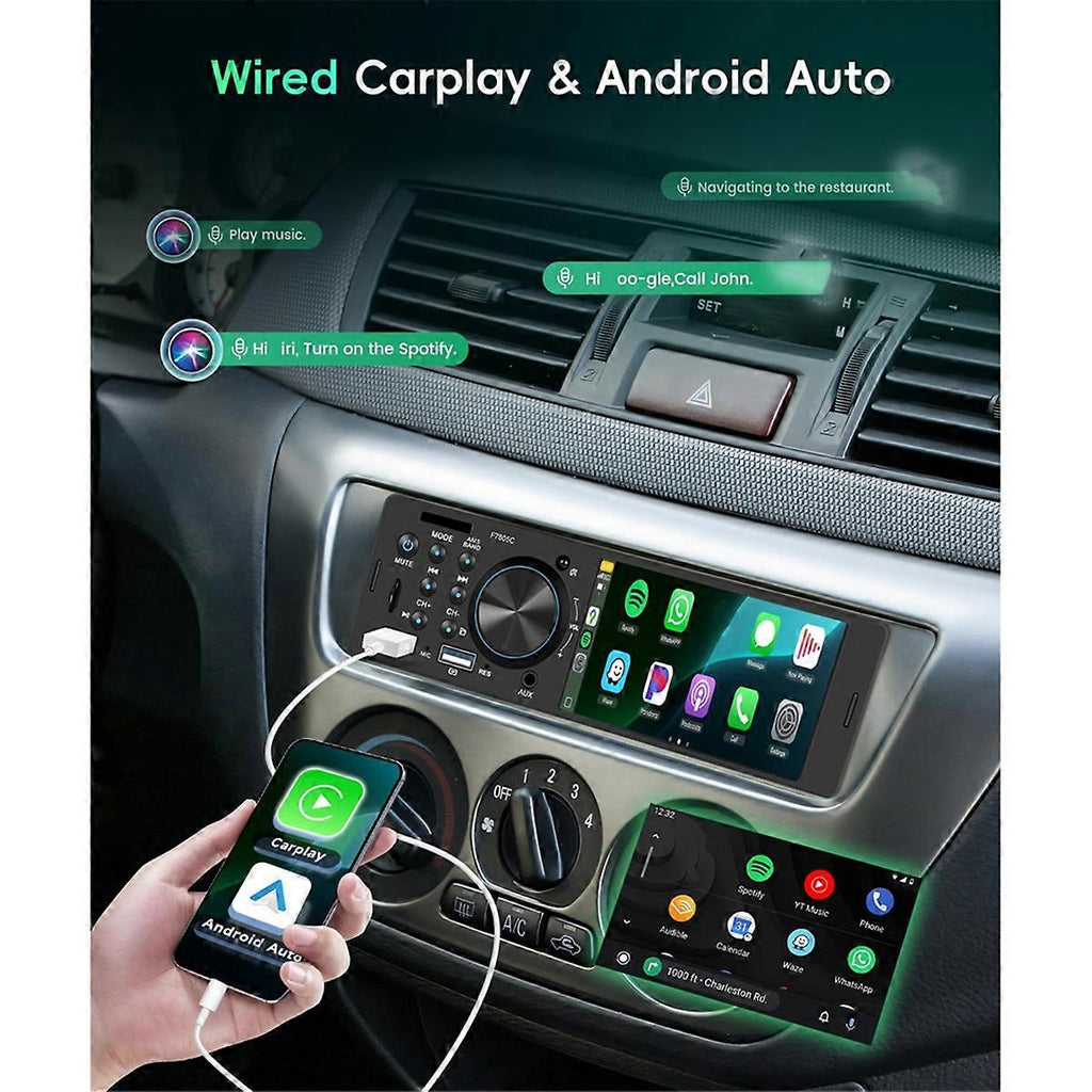 Single Din Radio with 4 inch Little Display: With 4 inch HD IPS touch screen.It has two USB ports for plugging in a thumb drive or charging your phone quickly. Plus, there're TF card and Aux slot. The big volume knob makes it easy to adjust sound, and colorful button lights add a . Wired CarPlay & Android Auto:Connect your IOS phone or Android phone via USB to access maps, music, calls, and more directly on your car's screen. Enjoy a , more convenient drive with familiar apps at your fingertips. (More stable than wireless connections) FM Radio with RDS: This single din car stereo lets you tune in to your favorite stations with crystal-clear FM radio. 18 preset radio stations with automatic channel search. Plus, RDS (Radio Data System) gives you extra like song titles, artist names, and traffic updates, right on your device. Stay connected and informed while you drive! Android MirrorLink & Airplay: Connect your smartphone to your car's display with MirrorLink. This feature lets you mirror your phone's screen onto car's display, giving you easy access to apps like navigation, music, and calls. It's simple to use-just plug in via USB and start enjoying a , hands-free driving experience. Backup Camera & Steering Wheel Control: With included 12LED backup camera,stay safe and in control with a backup camera that gives you a clear view when reversing. Plus, steering wheel controls let you adjust volume, change tracks, and more without taking your hands off wheel. Color: Black Material: plastic+metal Package Contents: 1x Car Stereo 1x Backup Camera 1x Remote Control Only above package content, other products are not included. Note: Light reflection and different displays may cause color of item in picture a little different from real thing. The measurement allowed error is +/- 1-3cm.