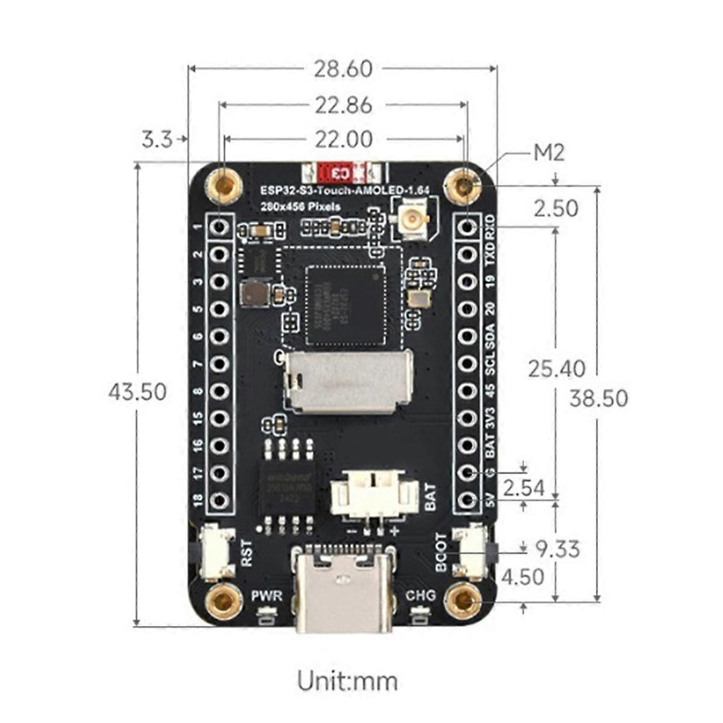 ESP32-S3 AMOLED 1.64-Inch Touch Display Screen Flash-16MB PSRAM-8MB WIFI Bluetooth Wireless Module 280x456 QSPI