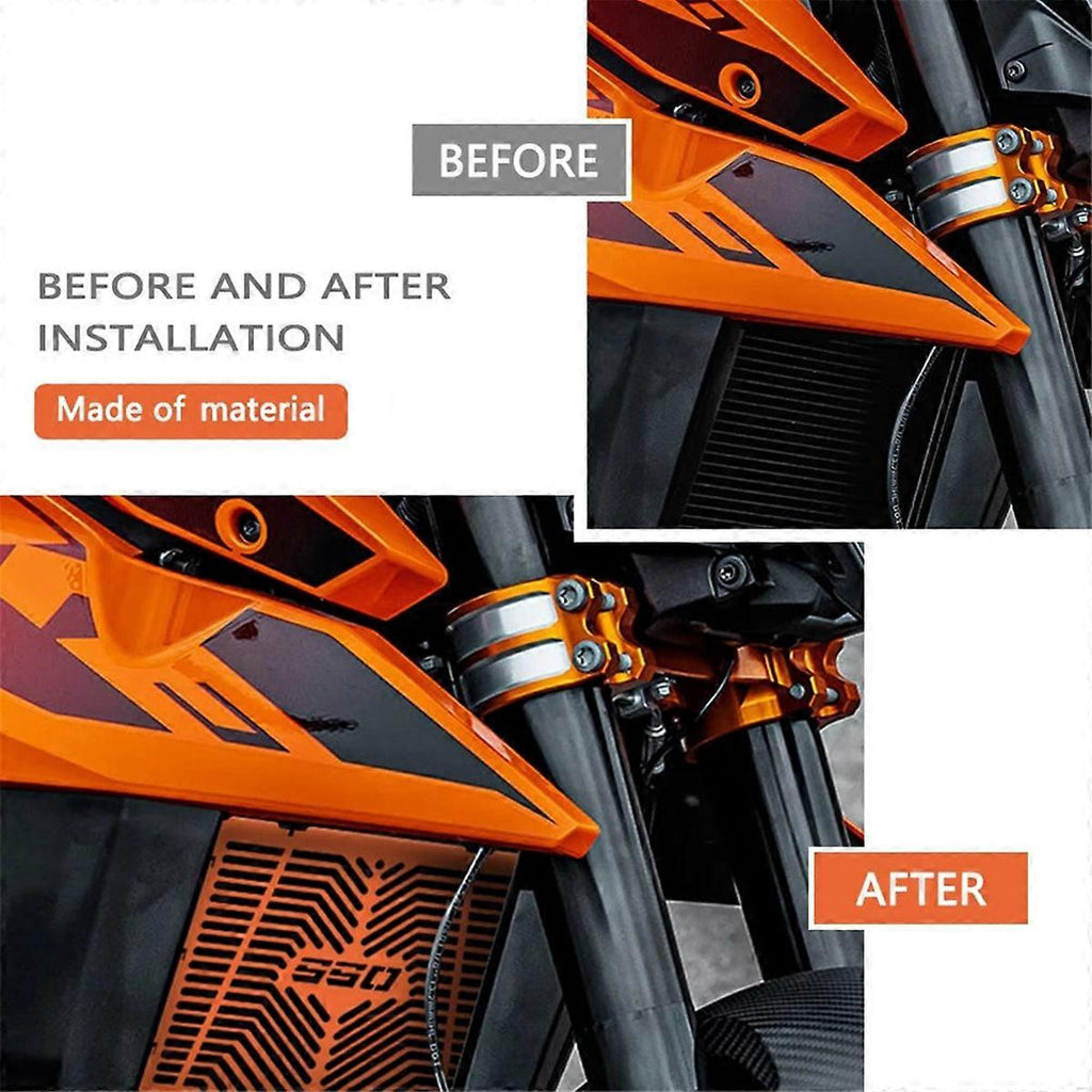 Made of Metal, strong and , extending service life. Maintain the safety of motorcycle radiator,Perfectly reduce air resistance and help riders feel the pleasure of driving. Maximizes airflow to keep your engine cool while effectively preventing debris and bugs from entering the radiator fins. The radiator guard is designed along the radiator so that can protect the radiator securely and effectively. The installation is simple, no complicated procedures are required, saving your time. Fitment: For 990 2024 2025 2026 Note: Please confirm when placing your order that this product is suitable for your motorcycle. Color: A:Orange Material: Metal Package Contents: 1 * Motorcycles Radiator Guard Only the above package content, other products are not included. Note: Light reflection and different displays may cause the color of the item in the picture a little different from the real thing. The measurement allowed error is +/- 1-3cm.