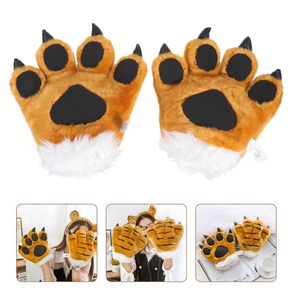 1 Pair Tiger Claw Gloves Plush Gloves Warm Winter Gloves Tiger Role-play Props