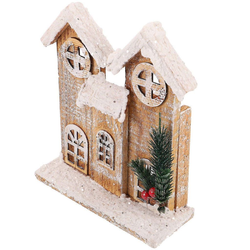 1 Pc Christmas Wood House Ornament Luminous Snow House Adornment (No Battery)