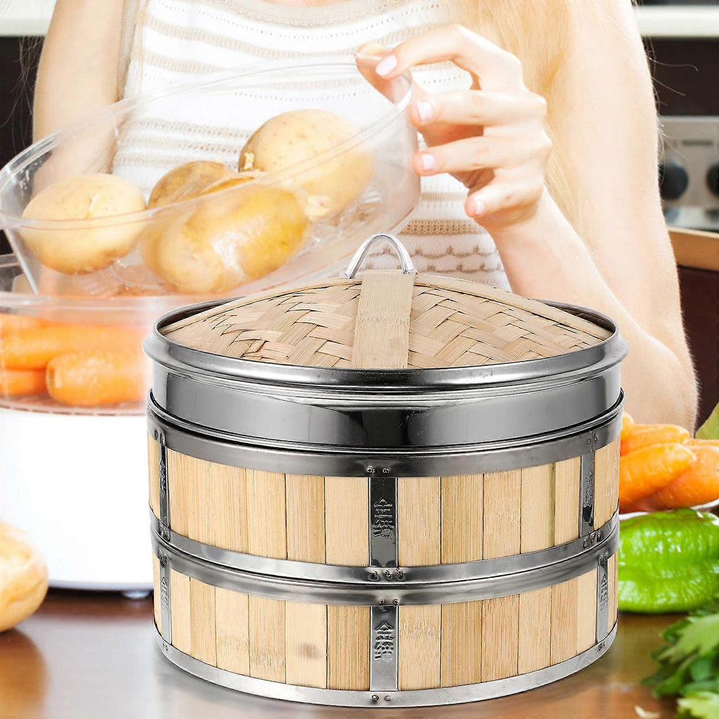 Description This is a bamboo steamer kit, made of premium material, safe and durable. You can use it for steaming and heating food, a very convenient food steamer. Bamboo Steamer Basket can be steamed at high temperature without being deformed easily. With it, you can eat hot food as well as delicious food easily. Features - Color: As Shown-Material:Stainless Steel, Bamboo- Size: 25.00X25.00X7.00cm/9.82X9.82X2.75in-Note:The style and color of the lid is random-Made of good and safe materials, practical and durable, which can be used for a long time. -Bamboo Steamer Basket is suitable for steaming desserts, meat, etc., very convenient and practical. -Heat-resistant and multi-function. It can be steamed at high temperature and is not easily deformed. -Heat evenly, and you can make delicious food for your family and friends with this Bamboo Steamer. -The perfect Bamboo Steamer Basket for rice, eggs, potatoes, corn and other foods. Packing list: 2 x Food Steamers1 x Lid