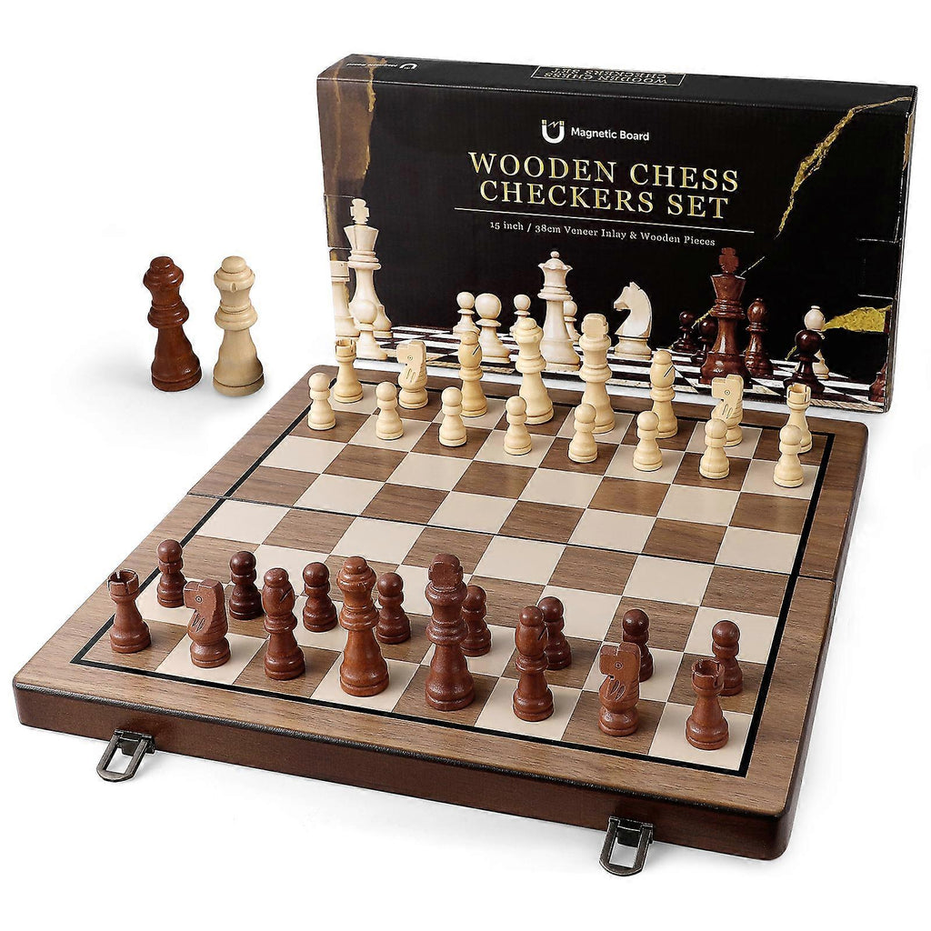 1 Set Wooden Chess Checkers Board Game Magnetic Chess Set Folding Chess Board Magnet Chess Pieces Travel Game