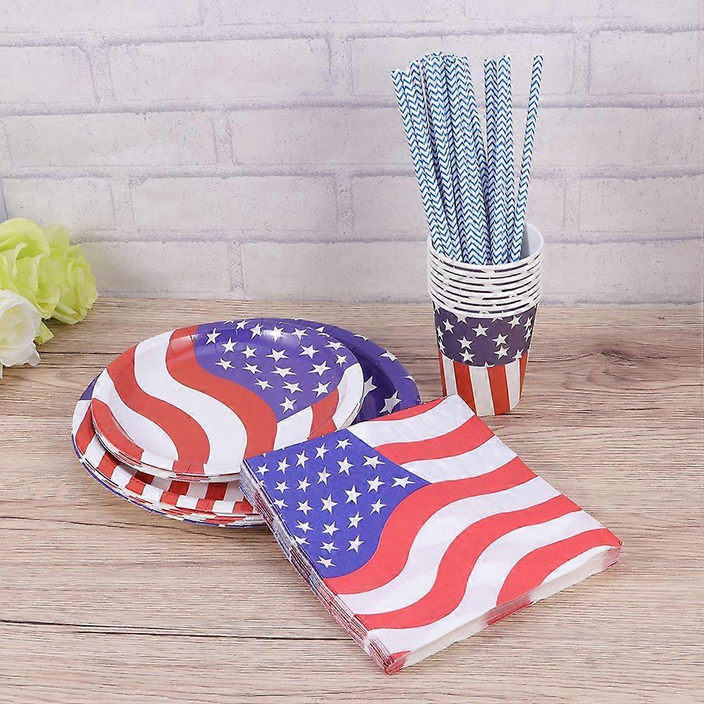 Description There are paper flatware set. Made of eco-friendly paper material, safety and cute. Printed with American flag pattern on the flatware surface, more colorful and elegant. Great paper flatware set for kids birthday party, wedding party, banquet, Independece Day, etc. Features - Color: As shown. -Material: Paper. - Package Size: About 29 x 26 x 12cm. - Made of premium and eco-friendly paper flatware set, safety and cute. - Includes paper plates, paper cups, napkins and ect. - The flatware set is portable and lighweight, great for party use. - Great paper flatware set for kids birthday party, wedding party, banquet, Independece Day, etc. - Excellent photo background or photo props to take photo shoots and selfies with family and friends.Package list: 8 x 7 inches plates 8 x 9-inches plates 8 x paper cups 20 x paper towels 8 x forks 8 x spoons 8 x cutters 25 x straws 21 x balloon