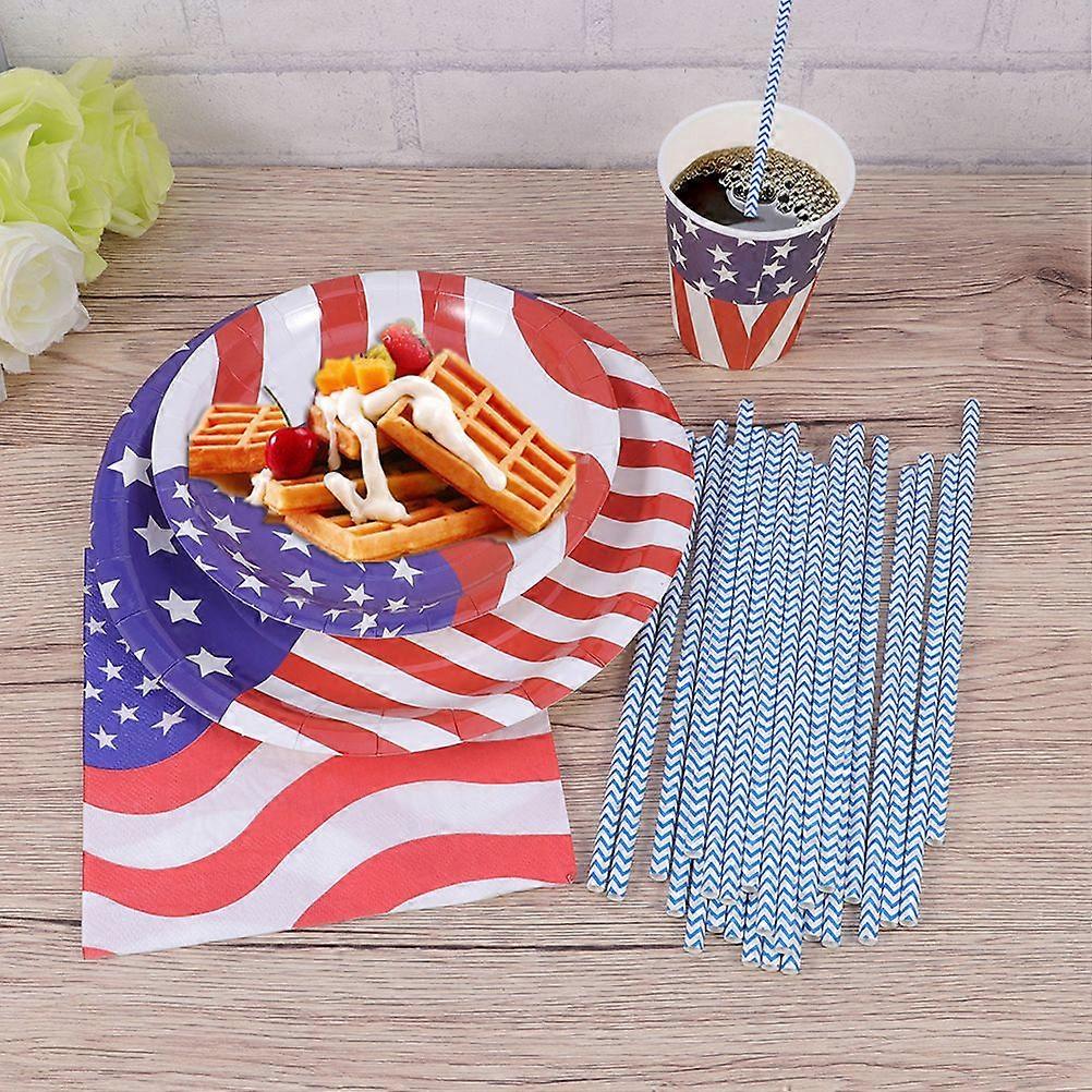 114pcs American Flag Paper Plate Cup Napkin Straw Balloon Cutlery Spoon Set Party Decorations for Independence Day Festival