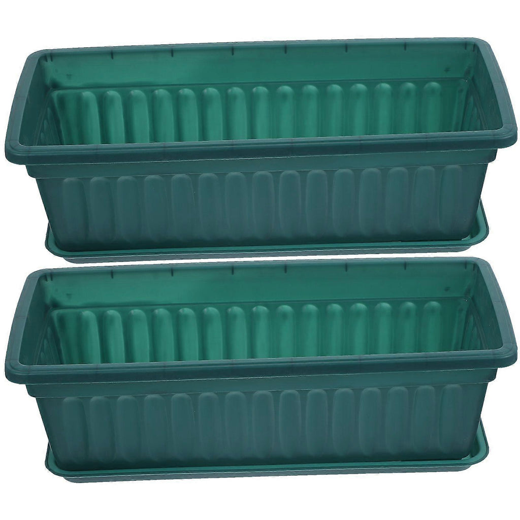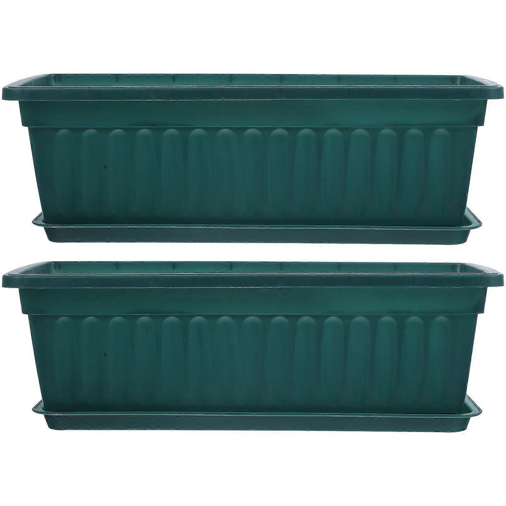 2Pcs Balcony Vegetable Planting Pot Rectangular Home Flowerpot Dark Green