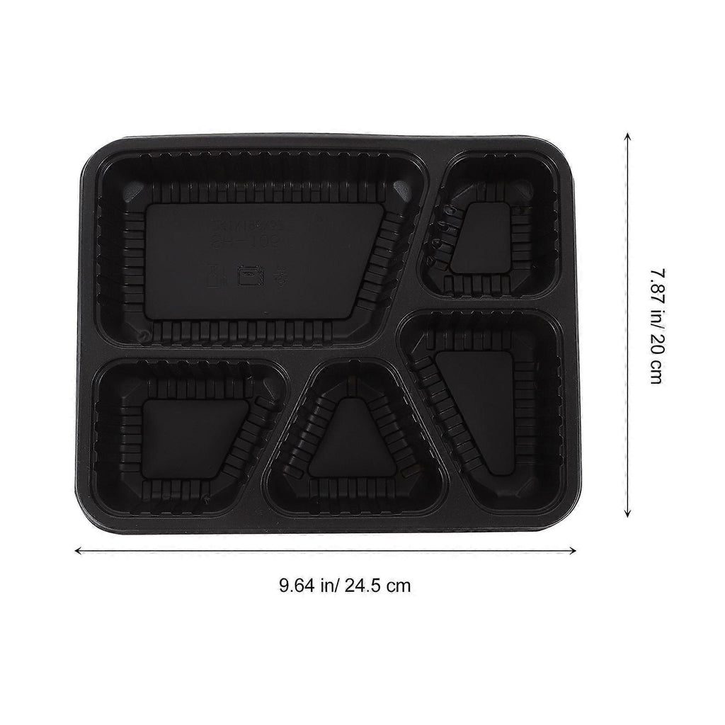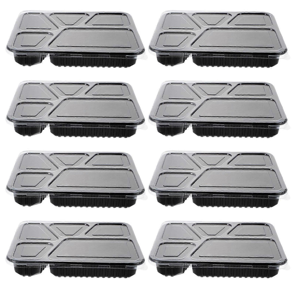 Description This item is a meal pre container with safe, stackable and reliable features, which is able to meet your needs and more. Its 5 compartment design makes meal prepping versatile. Use them for your main course, salad and dessert and enjoy your meal anywhere you go, making portion control easily. Features - Color: Black. - Material: Plastic. - Size: 24.5x20x4cm. - Whether you're creating freezer meals or handing out food to guests, the disposable food containers lock in all the flavor. - It is designed to create a tight seal that reduces the risk of spills during transit, preserves freshness for much longer. - Great for cooking, roastering or heating in the oven and serving on the table. - Its 5 compartment design makes meal prepping versatile. - Easy and convenient to use. It is to use when bringing over a dish, having guest or throwing a party. Make cooking easier.Package list: 30 x food containers
