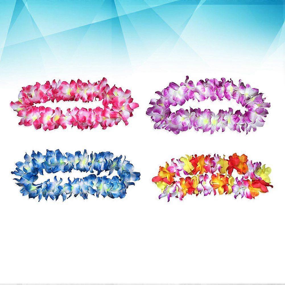 4pcs Hawaiian Leis Hula Dance Garland Artificial Flowers Neck Loop (Colorful, Rose Red, Blue and Purple)
