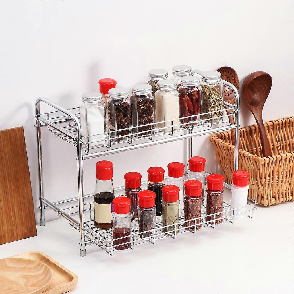 BESTONZON 1PC 2-Tier Kitchen Spice Rack Countertop Storage Organizer Shelf Holder for Jars Bottle