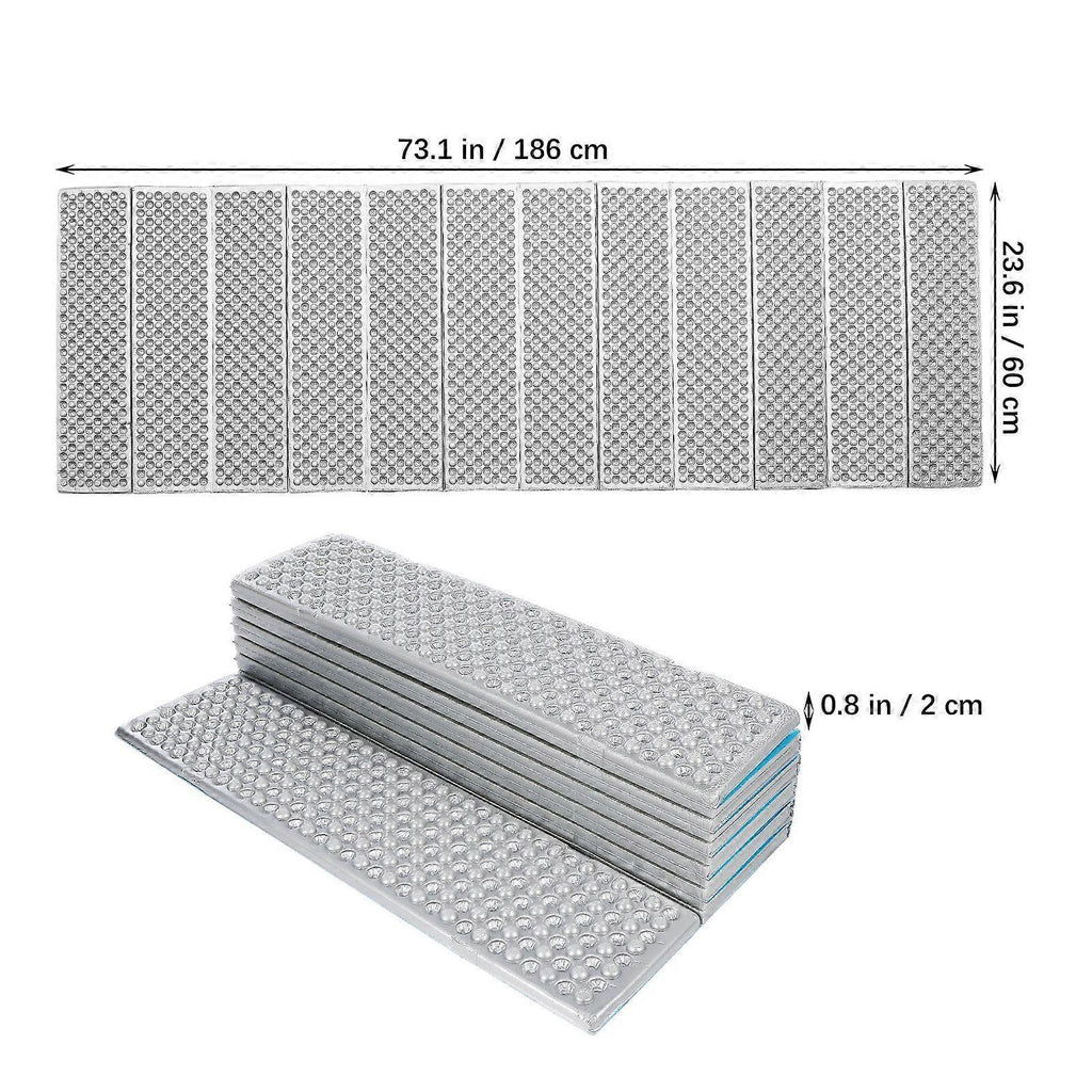 Description The folding sleeping mat for outdoor use is designed to provide ultimate comfort and protection against moisture. Made of premium material, this sleeping mat offers excellent insulation and enhanced thickness for added softness. Suitable for camping, hiking, backpacking, etc. Features -Color:Grey -Material:Pe cotton -Size: 186.00X60.00X2.00cm/73.10X23.58X0.79in - Insulated sleeping pad: This sleeping mat provides insulation and protection against dampness and coldness, ensuring that you can have a good rest outdoors. - Folding and lightweight: The folding sleeping pad is easy to carry with its light weight and folding feature, also easy to setup on the ground in seconds. - Comfortable to sleep: The camping cot is designed specifically for individual use, providing you with a soft and supportive surface to sleep on. - Proper thickness: This camping bed is designed with a proper thickness, which won't weigh you down or take up too much space while providing utmost comfort. - Various occasions: The camping mattress is ideal for anyone who loves the outdoors or needs an extra sleeping surface at home.Package list: 1 x folding sleeping pad 2 x straps