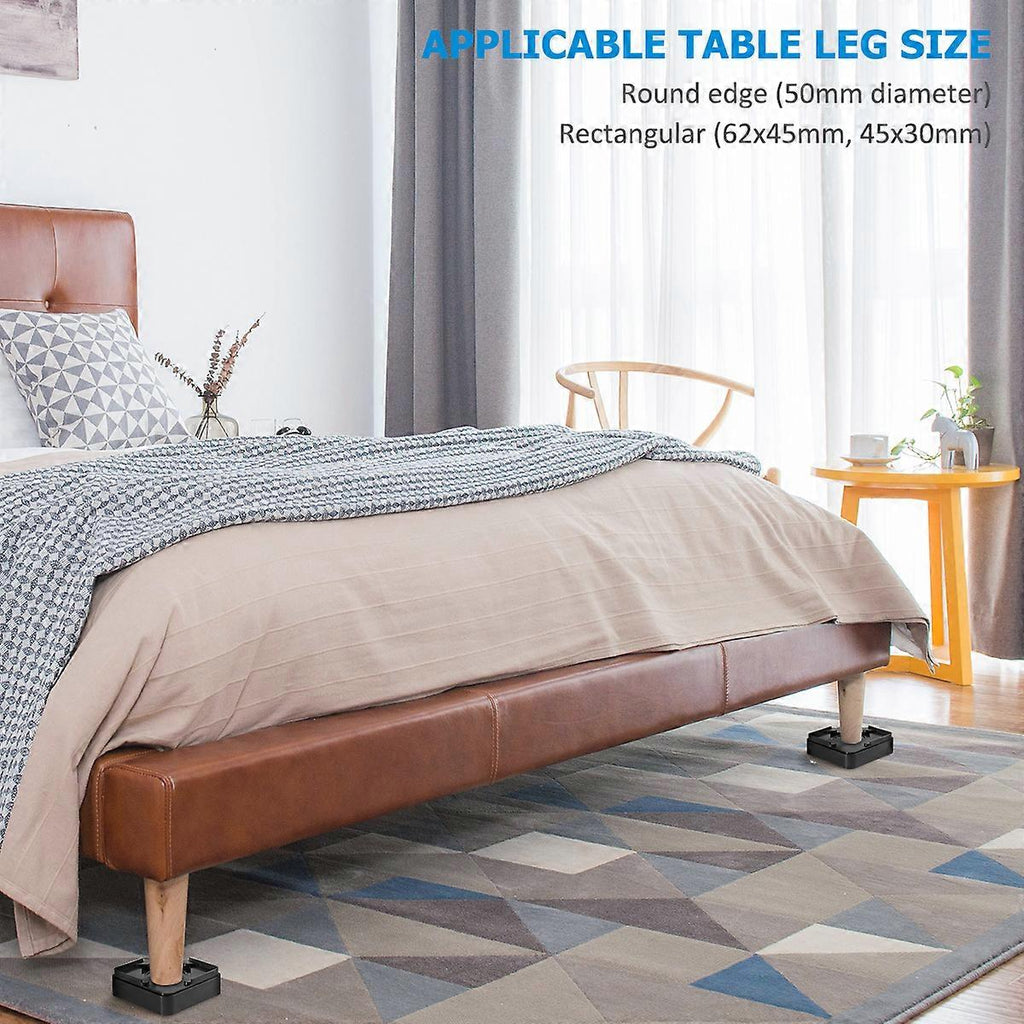 Description Made of sturdy and durable material, the furniture risers can serve you for a long time. The design is reasonable, the function is practical, it has a good anti-slip function and can help raise the height of the furniture, scratch proof and moisture proof. With complete configuration, easy installation, efficient and convenient, durable, it will be your perfect choice for furniture heightening cushion. Features - Brand: Healifty.- Color: Black.- Material: ABS, stainless steel.- Single layer height: 3.3cm/1.3in.- Applicable furniture leg size: Round edges (50mm/1.9in diameter); Rectangular (62x45mm/2.3x1.7in, 45x30mm/1.7x1.1in).- These furniture risers system instantly creates additional under bed storage space by lifting up the furniture, help you to organize and store the sundries at home more conveniently.- The furniture risers are suitable for various furniture legs such as for bed, sofa, table and chair at your home and office, furniture leg can fit securely into the recess cup.- They are made of premium quality materials, durable and heavy duty, not easy to break or deform, can be used for a long time, strong load bearing capacity, can safely support your household furniture.- With stackable furniture risers, can be stacked together or used singly, providing different rising heights, you can choose freely according to different needs.- Also can be used as wheels cups, help to fix the cabinet or storage racks with rolling wheels from rolling, can well protect your floor from being hurt or damaged.Packing list: 16 x Healifty Furniture Risers