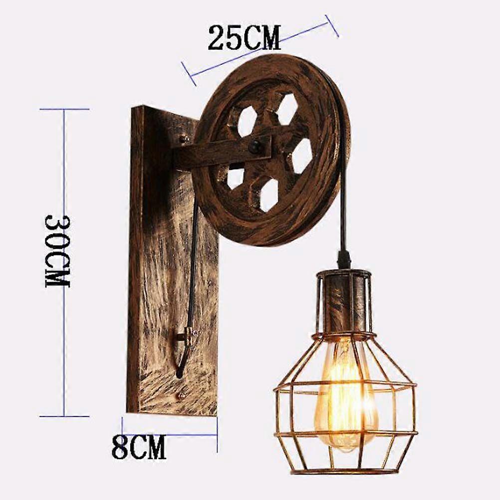 Description Does your monotonous house make you bored every time you go home? Have you ever thought that decorating for your house is a new interesting hobby? Home decoration is willing to give you many interesting ideas for your house. Wall lamp easily attracts your guests to your home because it's beautiful, unique and modern to create your own style. Feature - Color: Rust Color. - Material: Iron. - Size: 30 x 25 x 8 cm. - Chassis: 30*8CM; diameter of pulley 25CM. - Voltage: AC85-265V - Light Source: No - Suitable light source: E27 bulb(no bulb included). - Unique retro design and for most of modern interiors. - Adding a classic, sophisticated feel to your decor. - Antique metal Cage light,pendant Light. - LED energy saving lamps. - Application: widely used in bars, hotels, karaoke, restaurant, cafe, windows, showrooms and other environmental decorative lighting. Package list: 1 x retro wall lamp(bulb not include)