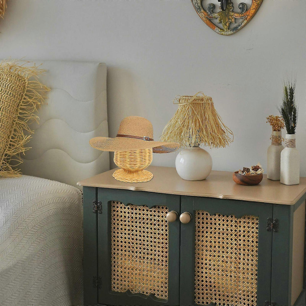 Rattan Mannequin Head Stand Hat Wig Display Holder Handmade Wicker Showcase Rustic Cap Rack Lightweight Stable Base Unique Vine Woven Design for Home