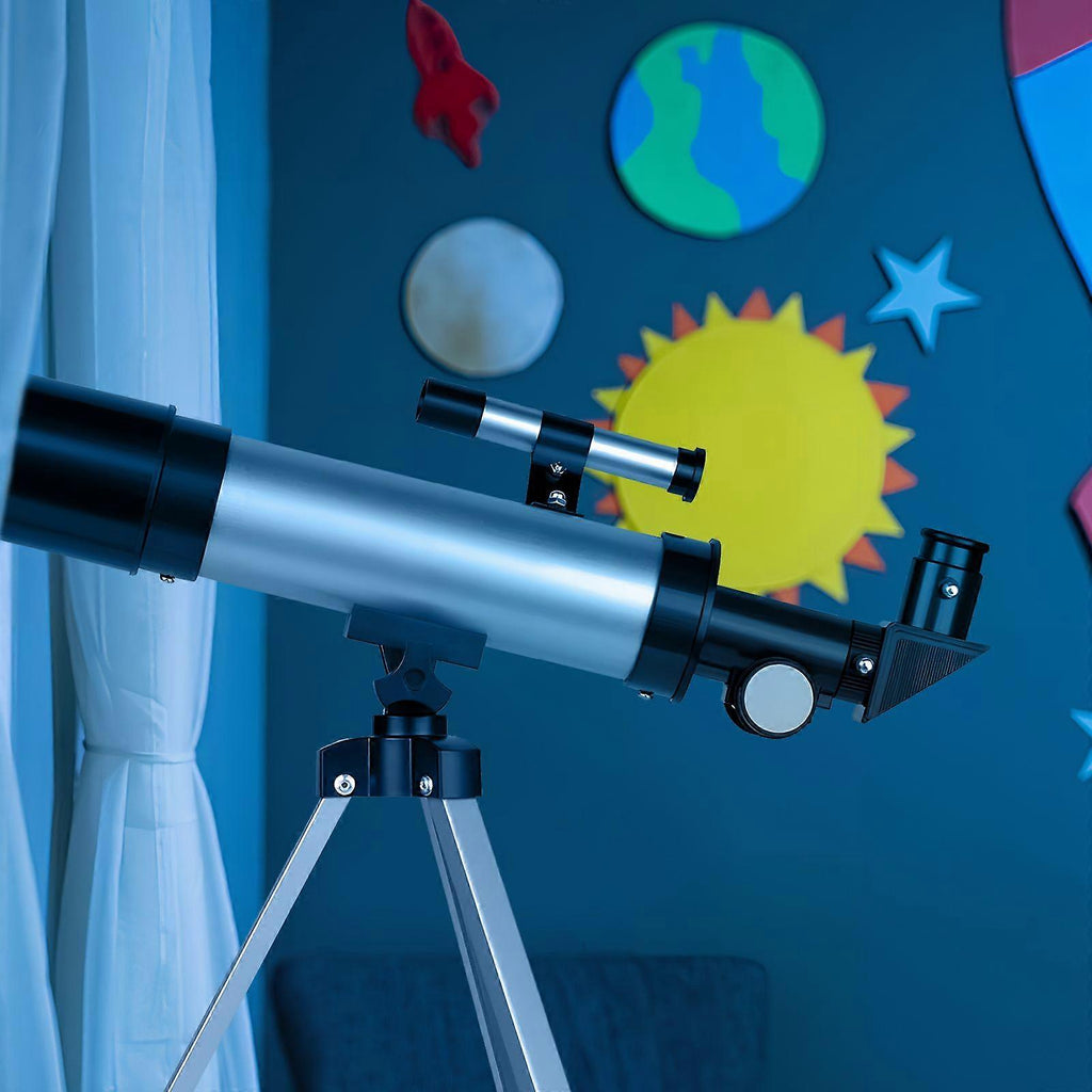 Description The astronomical refractor telescope with a tripod is suitable for observing the night sky. With its sturdy tripod, you can easily set up the telescope in their backyard or a park, allowing for steady views of planets and stars. Features -Magnification: 18X, 27X, 60X, 90X -Eyepiece set: H6mm, H20mm -Focal length: 360mm -Objective lens diameter: 50mm - mirror: 90 reverse mirror -Barlov magnifier: 1.5X mirror -Coating: FMC multi-layer broadband -Optical structure: refractive -Color:Silver -Material:Aluminum alloy, Plastic -Size: 40.00X28.00X35.00cm/15.72X11.00X13.76in -High definition observation: the telescope features a excellent refractor lens, ensuring a clear astronomical viewing experience -Portable design: equipped with a tripod, this telescope is lightweight and easy to set up, making it ideal for outdoor adventures -Versatile applications: the telescope is ideal for stargazing, bird watching, and enjoying live events, allowing you to explore various scenes effortlessly -Precision focusing system: refractor includes an accurate focal adjustment mechanism, enabling you to easily enhance your viewing experience as needed -Metal material: made from aluminum alloy and plastic materials, this telescope is both robust and lasting, ensuring stable use in different environmentsPackage list: 1 x tripod stand 1 x magnifier 3 x eyepieces 1 x main tube 1 x finderscope 1 x mirror (reverse mirror)