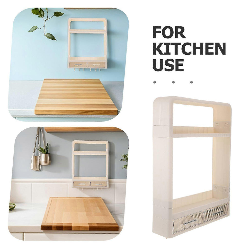 Description This wall-mounted kitchen organizer is designed to maximize your storage space while keeping your kitchen neat and tidy. Its sleek and modern design blends seamlessly with any kitchen decor, providing a practical solution for organizing spices, condiments, and other essentials within reach. Features -Color:Beige -Material:Plastic -Size:51.50X40.00X10.00cm/20.24X15.72X3.93in -Note: with drawer and 6 removable hooks -Space optimization expert: Hanging Spice Rack, maximize your space by utilizing wall-mounted storage, keeping your countertops tidy and organized. perfect for small kitchens or limited spaces -No-drill installation: Wall-Mounted Spice Rack, features a simple adhesive design that requires no drilling, preserving your walls while ensuring easy installation and removal when needed -Multifunctional storage: Kitchen Spice Organizer, designed to hold spice jars, utensils, and other kitchen essentials, this rack enhances efficiency and keeps spice jar within reach -Quick access to seasonings: organize your spices neatly for easy identification, allowing you to grab what you need instantly and enjoy a smoother cooking experience -Sturdy and reliable: made with high-strength materials, this rack offers excellent load-bearing capacity, maintaining its shape and functionality over timePackage list: 1 x wall-mounted rack