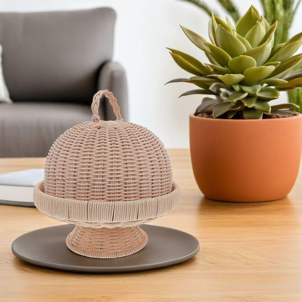 Description This woven tray combines functionality and elegance, featuring a design that complements any kitchen or dining space. Its versatile lid ensures freshness for bread, fruits, or snacks, while the intricate weaving adds a touch of rustic charm to your home decor. Features -Color:Khaki -Material:Wicker -Size:26.50X26.50X11.50cm/10.41X10.41X4.52in(Serving Tray) -Size:23.00X23.00X16.00cm/9.04X9.04X6.29in(Lid) -Craftsmanship: made with wicker weaving, this tray adds a touch of natural beauty to your home decor, for festive occasions or daily use -Design: the lid effectively protects food, keeps it fresh, reducing the hassle of frequent sealing, ideal for kitchen and living room use -Portable convenience: lightweight and easy to carry, this tray is for gatherings or picnics, allowing you to enjoy outdoor moments effortlessly -Versatile usage: beyond food storage, it can also organize jewelry and small items, enhancing daily convenience and tidiness -Durable material: crafted from wicker, this tray is built to last, ensuring reliability and functionalityPackage list: 1 x tray 1 x lid