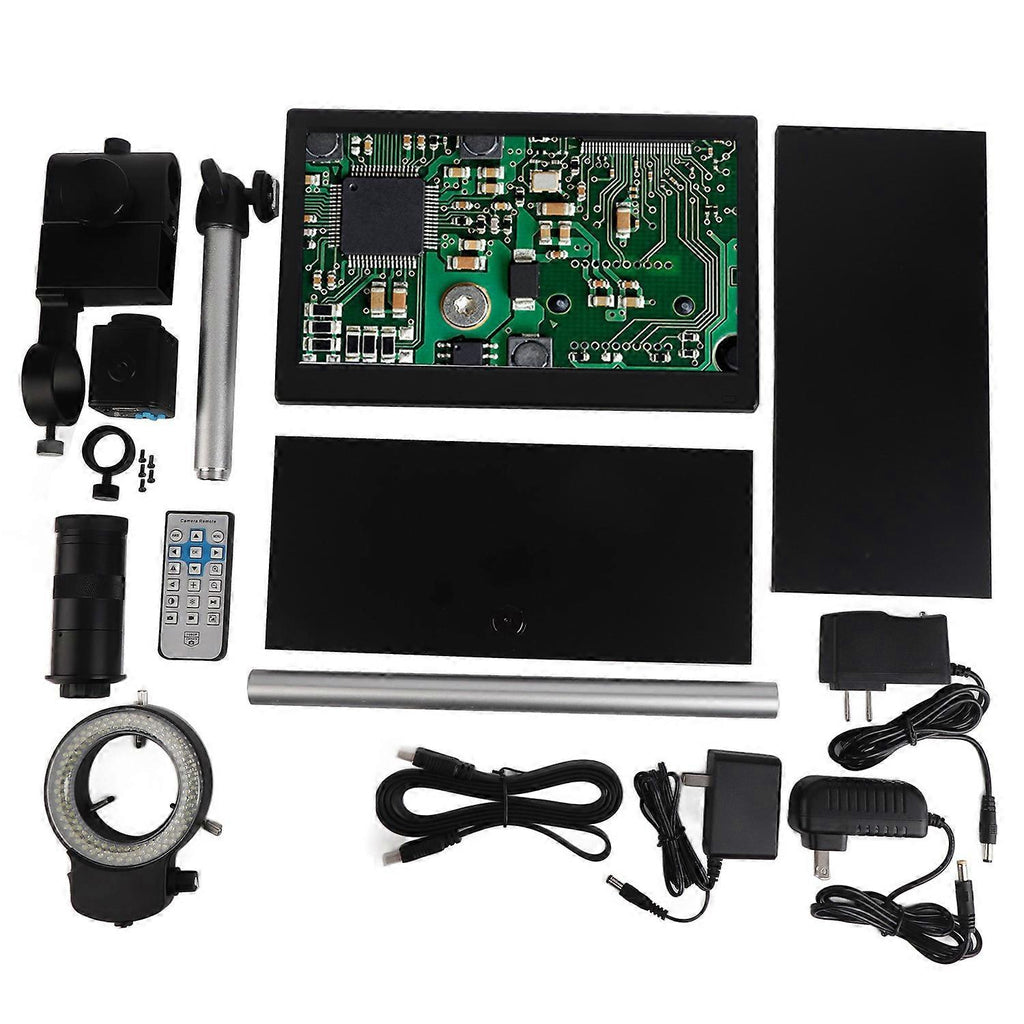 1 x Microscope Camera1 x 150X Type C Mount Lens1 x 144 LED Light3 x Power Adapter1 x High Definition Multimedia Interface Cable1 x Driver1 x Remote Control6 x Microscope Stand Accessories5 x Screws1 x 11.6 Inch Screen2 x Manual