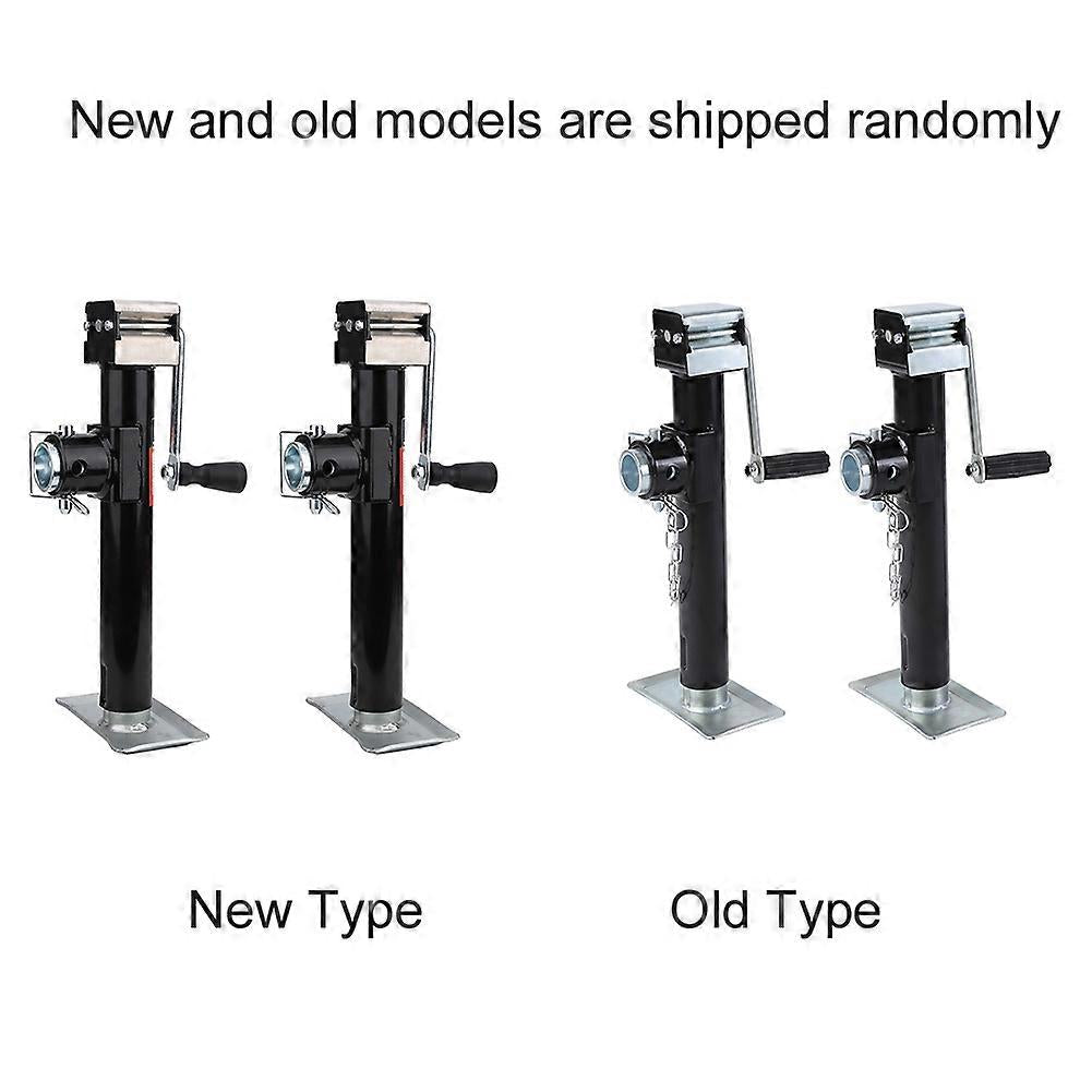 Features: 1. Support up to 1000kg of trailer tongue weight. 2. Designed to weld directly to the trailer frame. 3. Side-wind handle easily raises or lowers trailer coupler. 4. Pull-pin keeps jack securely locked in place. 5. Made of high quality A3 steel, very durable and sturdy to use. Specifications: Material: A3 Steel Color: Black Load-bearing: 1000kg Adjustable Height: Approx. 25.5cm / 10inch Min. Height: Approx. 45.5cm / 17.9inch Lift Height: Approx. 25.5cm / 10inch Max Height: Approx. 71cm / 28inch Width: Approx. 18cm / 7.09inch Application: Caravan, Yacht, Trailer, etc. Package Included: 2 x Trailer Jack . Note:Please note that the new type and old type of this product will be sent randomly, and make sure you will not mind before ordering.
