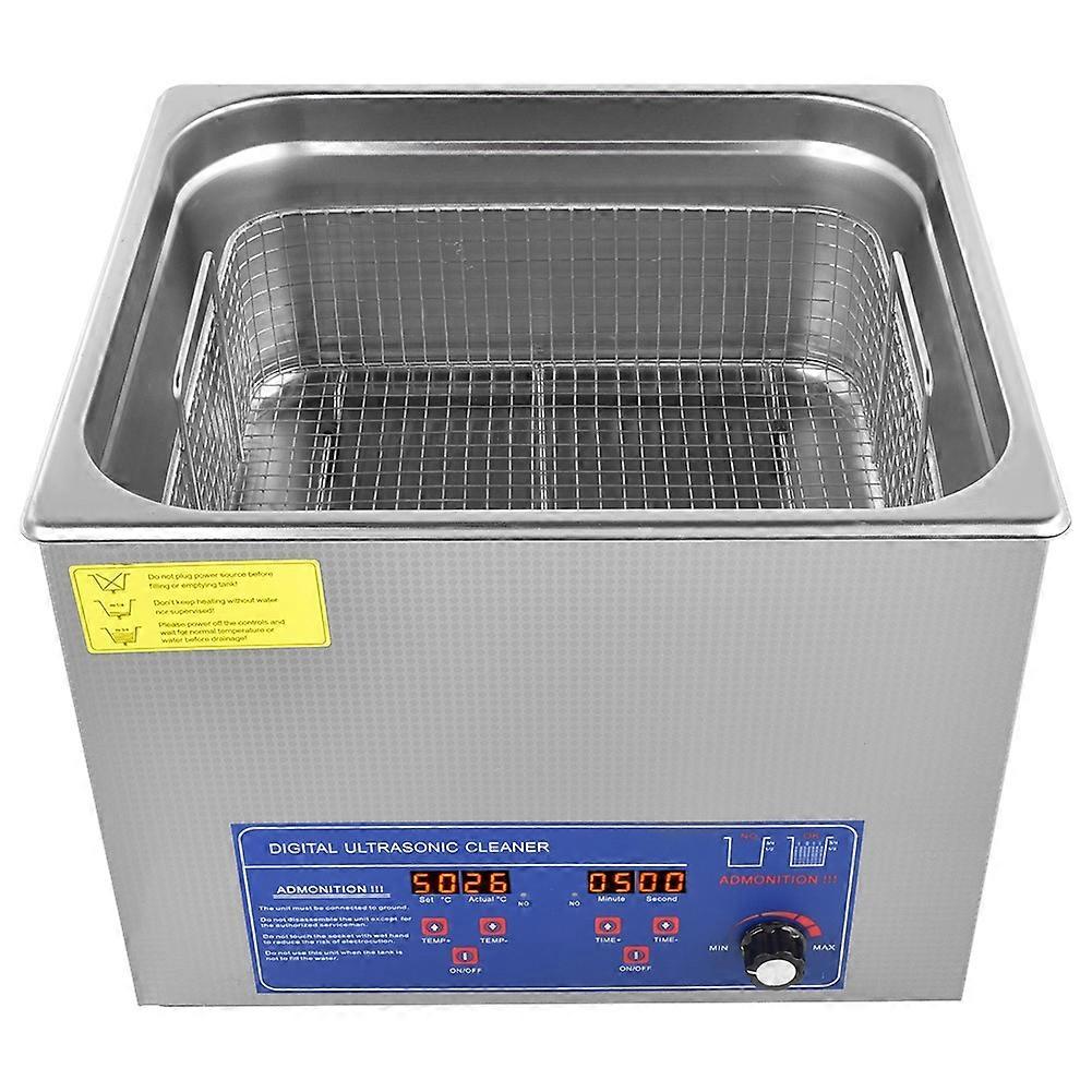 Feature: 1. The drain valve made of high quality copper, corrosion resistant. 2. Non-slip, shock-resistant foot pads for safe and reliable use. 3. Double insurance safety switch, safer to use. 4. Industrial grade 304 stainless steel liner, stainless steel cleaning basket, fine workmanship and durability. 5. Heat emission holes for faster heat dissipation and better circuit protection. 6. 304 stainless steel handle, high hardness, rust proof, long service life. Specification: Item Type: Ultrasonic Cleaner Model: 60AL Material: SUS304 Cleaning Tank Size: Approx. 330 x 300 x 150mm / 13 x 11.8 x 5.9in Ultrasonic Power: 150 ~ 360W Heating Power: 400W Frequency: 40KHz Capacity: 15L Number of Oscillators: 6 Time Setting: 1-99 Minutes Temperature Setting: Room Temperature -80 ?? Product Net Weight: 8631 g / 304.4 oz(approx.) Product Size: Approx. 360 x 330 x 270mm / 14.2 x 13 x 10.6in. Package List: 1 x Washing Machine1 x Basket1 x Instructions1 x Power Cord