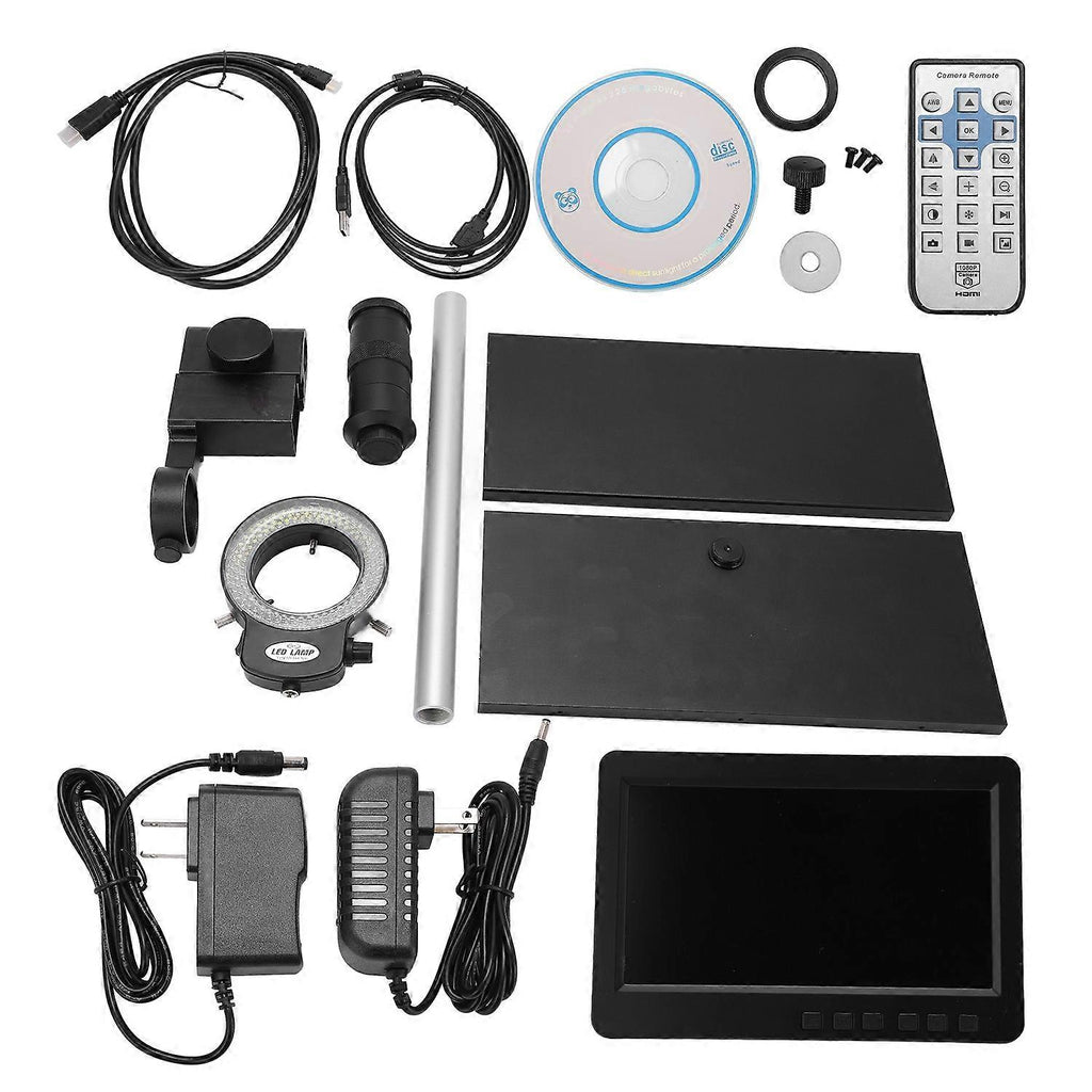Feature: 1. 7in Large Screen Display: High definition multimedia interface USB2.0 dual output camera, with 26MP CMOS sensor 1/2.9 inch, high resolution, clear image. 2. Zoom Lens And Ring Light: With 8X?130X zoom C mount lens, magnification power is 0.11X?2X. The ring light provides strong and concentrated shadow free lighting. 3. Good Compatibility: PCs supporting multiple systems, for Windows XP/7/8/10 systems, including other functions of computer measurement software (for high definition multimedia interfaces). 4. Multifunctional Design: This microscope achieves full HD, high object distance, multifunction and multi output. With the help of its own measurement software, it can meet the different needs of many fields. 5. Ergonomic Design: Its appearance is combined with an ergonomic design. Display screen shows the image of observed object. You can use the eyepiece to observe the object for a comfortable experience. Specification: Item Type: Microscope Kit Material: ABS, Alloy Purpose: Industrial Maintenance and Teaching Demonstration Remote Control Battery Type: 1 x Button Battery CR2025 (Battery Not Included) Image Sensor: 26MP CMOS High Definition Sensor Video Output: 1080P Full HD (For HD Multimedia Interfaces); 1080P (For USB) Video Format: MP4 Magnification: Standard Magnification 150X (Up to 300X) Digital Electronic Magnification: 7X Photo Resolution: 26MP (5888x4416); 20MP (5120x3840); 16MP (4608x3456); 10MP (3648x2736); 8MP (3264x2488); 5MP (2592x1944); 2MHD (1920x1080P) Language: English/Simplified Chinese/French/Spanish/Japanese/German And Other Languages Horizontal Lines: 8 lines, color, width and position can be set Photo Format: JPEG Format Working Distance: 5-12cm / 2.0-4.7in Video Output: HD Multimedia Interface/USB RGB: RGB value setting does not matter Microphone: Support Storage: Memory Card Storage, Maximum 128G Computer Support: Support for Windows XP/7/8/10 system, including other functions of computer measurement software (for HD Multimedia Interfaces) White Balance: Automatic/Manual Color: Standard color/black and white/dark brown Exposure: Automatic/Manual Sharpness: Manual Saturation: Manual Mirror Setting: Normal/Mirror/Flip/Mirror+Flip Contrast: Manual Frequency: 50hz/60hz Bracket Size: Approx. 17x11x20cm / 6.7x4.3x7.9in Screen Size: 7in 8X-130X Zoom C Mount Lens: Working Distance: 50mm-350mm Field of View: 3.1mm-66mm Zoom Ratio: 15:1 Amplification Power: 0.11X-2X (approximately 8X-130X on the display) Length: Approx. 100mm / 3.9in Diameter: Approx. 28mm / 1.1in Ring Light Parameters: Number of LEDs: 144Pcs Operating Voltage: DC12V Plug Specifications: AC 100-240V, 50-60HZ, Automatic Switching Ring Light Inner Diameter: Approx. 60mm / 2.4in Overall Outer Diameter: Approx. 94mm / 3.7in Clamping Range: 27-45mm / 1.1-1.8in . Package List: 1 x Display1 x Lens1 x Ring Light2 x Power Supply1 x Remote Control (Battery Not Included)1 x Software CD1 x USB Cable1 x HDTV to MINI Cable2 x Base Plate1 x Pillar1 x Tuner1 x Fixing Screw1 x Ring1 x Gasket3 x Screw1 x Manual Note: 1. Please allow 0?1 inch error due to manual measurement. Thanks for your understanding.2. Monitors are not calibrated same, item color displayed in photos may be showing slightly different from the real object. Please take the real one as standard.3. The memory card storage is only suitable for HD multimedia interface output, and the USB output will be stored in the PC.4. Regarding the remote zoom function, it can only be used when you connect the screen with the HD multimedia interface cable.5. When you connect the PC with software, most of the counting functions cannot be used. If you need, you can connect to the screen through the HD multimedia interface cable.6. The product needs to be used with a zoom C mount lens.