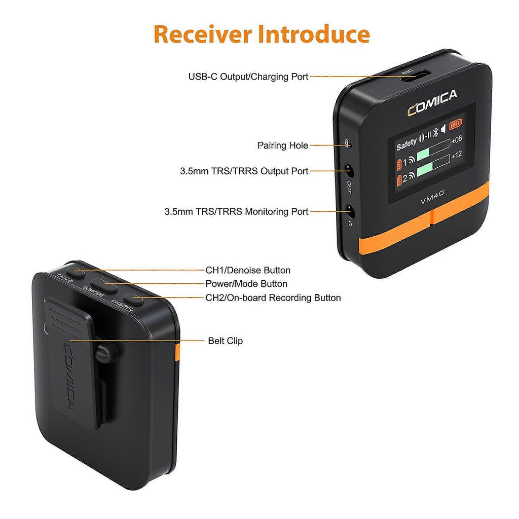 COMICA VM40 One-Trigger-One 2.4G Wireless Microphone 48K/32bit Dual-Channel Super-Cardioid Mic 200M