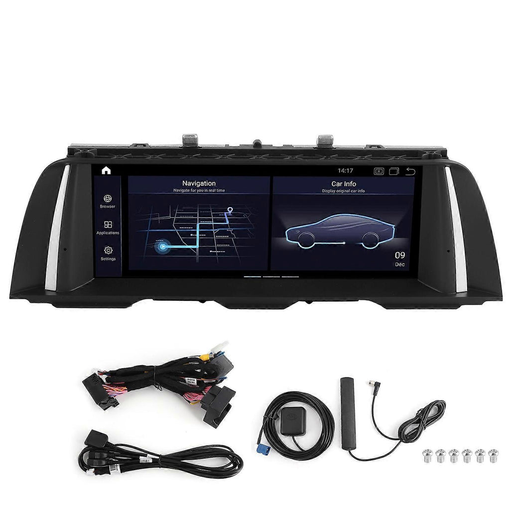 Feature: 1. Car navigator, support WIFI connection and 4G networks, specifically designed to fit for 5 Series F10/F11 2009?2017. 2. Support original car functions, such as air conditioning, ambient light, steering wheel function, original car reversing image, etc. 3. Support for Android operating system, allows to download a large number of applications, such as for Google Play Store /for Skype /for Facebook / for YouTube /for Twitter, etc. 4. 10.25?inch large screen, 1920 x 720 high resolution, supports high?definition video playback. Full touch design allows you to control at will. 5. It has a steering wheel control function, supports intelligent voice, and is simple to operate without cumbersome steps. 6. Support for iOS Phone (for CARPlay) and Android Phone (for Android Auto) mobile phone interconnection function. Specification: Item Type: Car Navigator Material: ABS Fitment: Fit for 5 Series F10/F11 2009-2017 Model: QI-10127 Operating System: for Android 10.0 Screen Size: 10.25 inches Screen Resolution: 1920 x 720 Configuration: GPS/BT/USB/wireless CARPLAY/AHD/DSP Decoding Chip: for Qualcomm MSM8953 Power Amplifier Chip: TDA7388 Mobile Phone Interconnection: for Android two-way /for IOS one-way GPS Navigation: Support Radio Band: FM Radio Chip: 8227 Audio Frequency: FM87.5-108m Reversing Image: Support AHD Brake Reminder Function: Yes Steering Wheel Control Function: Yes Bluetooth: Support, version 4.0, support Bluetooth music, Bluetooth phone Output Terminal: 1 way reversing video input. 1 way record video input. USB interface: Version 2.0 has 2 tail line outputs Play Mode: USB/Bluetooth 4.0 (password: 0000) Supported Image Formats: JPEG, GIF, PNG, BMP Supported Audio Formats: MP3, FLAC, APE, WMA, WAV, AAC, AMR, etc. Supported Video Formats: AVI, ASF, MP4, MOV, MPG, MPEG 1/2/4, VOB, MKV, FLV, TS, WMV, RMVB, 3GP, 1080P, etc. Working Voltage: DC 9-17V How to Use: 1. Loosen the bolts of the center control panel. 2. Remove the center control panel trim. 3. Remove the original car's central control panel and disassemble the original car's multimedia host. 4. Organize the GPS antenna of the new navigation host. 5. Check the signal line plug and power cord plug connected to the host. 6. Connect the signal line plug, ACC power plug and GPS antenna of the new navigation host. 7. Turn on the vehicle and check whether the new navigation host is working properly. 8. Start the navigation and drive a circle around, check whether the navigation coordinates are offset and whether the GPS positioning is connected. 9. After the test is completed, restore the vehicle after there is no problem.. Package List: 1 x Host 6 x Screw 1 x Audio Cable 1 x Power Cord 1 x GPS 1 x Antenna 1 x Wiring Diagram 1 x Manual
