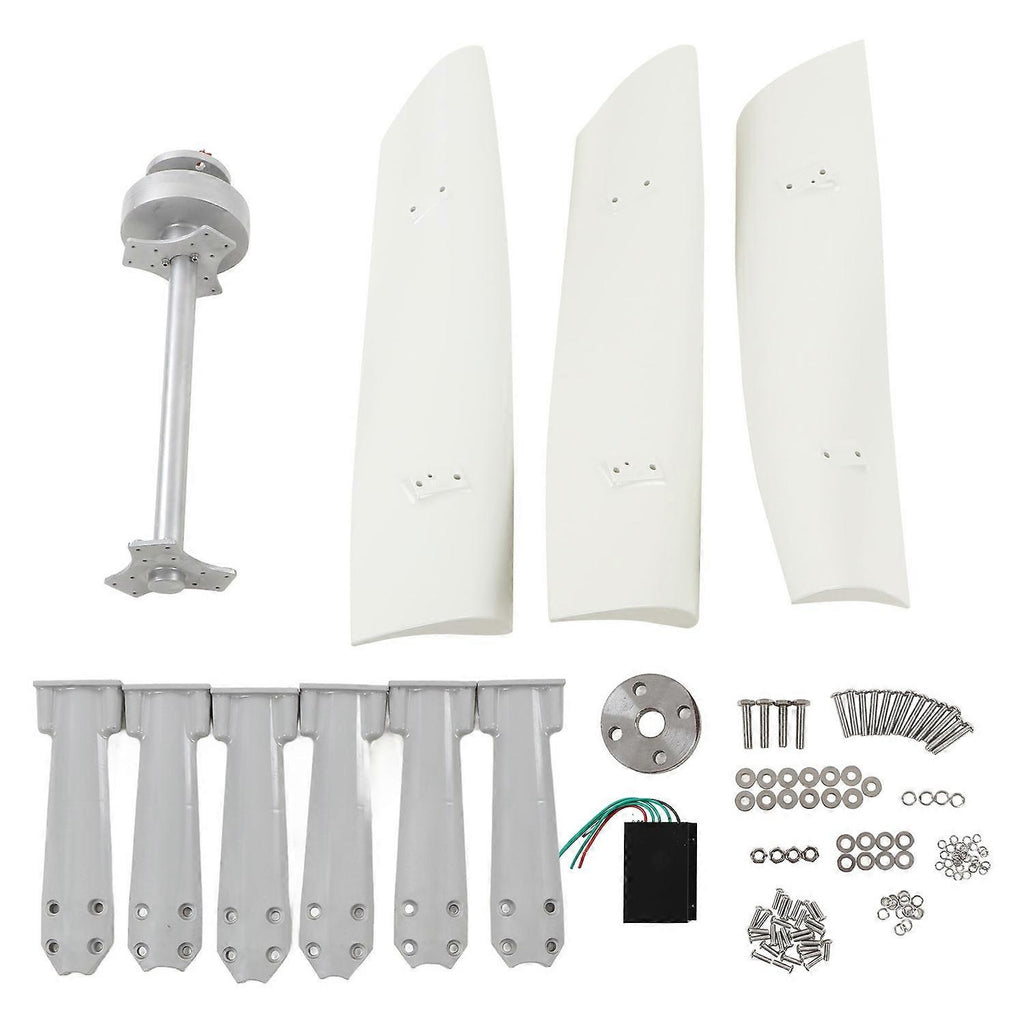 Feature: 1. APPLICABLE SCENARIO: This vertical wind generator can be used in hybrid system of household solar panel photovoltaic system, LED street lamp, computer room, industry, ship, RV, boat, farm and so on 2. CURVED BLADE: This vertical axes wind turbine uses a curved blade design to efficiently harness wind energy and maintain higher power generation. The aerodynamic design allows the rotor to operate quietly and reliably 3. HIGH EFFICIENCY: The wind turbine generator is designed with a three phase AC permanent magnet, with a low torsion, high power tracking intelligent microprocessor, which can effectively adjust the current and voltage, significantly increasing the utilization rate of wind energy and annual power generation 4. STABLE AND COMPACT: The wind turbine generator uses double bearings, the fan movement is more stable with low vibration. In addition, due to compact shape, has the lowest initial wind speed and a larger windward area, enabling power generation at lower wind speeds 5. LOW NOISE: Wind turbine with coreless generator, horizontal rotation and aircraft wing design reduce noise to levels not noticeable in the natural environment and will not affect your home or life Specification: Item Type: Wind Power Turbine Generator Kit Model: X3 Rated Power: 600W Maximum Power: 620W Starting Wind Speed: 2m/s Rated Wind Speed: 12m/s Safe Wind Speed: 45m/s Generator: Three phase permanent magnet suspension motor Control System: Electromagnet Braking Mode: Electromagnetic braking Overload Protection: Electromagnetic brakes and unloading devices Wind Turbine Installation Height: Approx. 2 ~ 12meter / 6.6 ~ 39.4ft Color: White. Package List: 1 x Main Engine Axes3 x Fan Blade6 x Support1 x User Manual1 x Controller1 x Flange Seat4 x Large Screw4 x Large Nut8 x Large Gasket4 x Large Washer13 x Middle Screw13 x Middle Gasket13 x Middle Washer28 x Small Screw27 x Small Washer