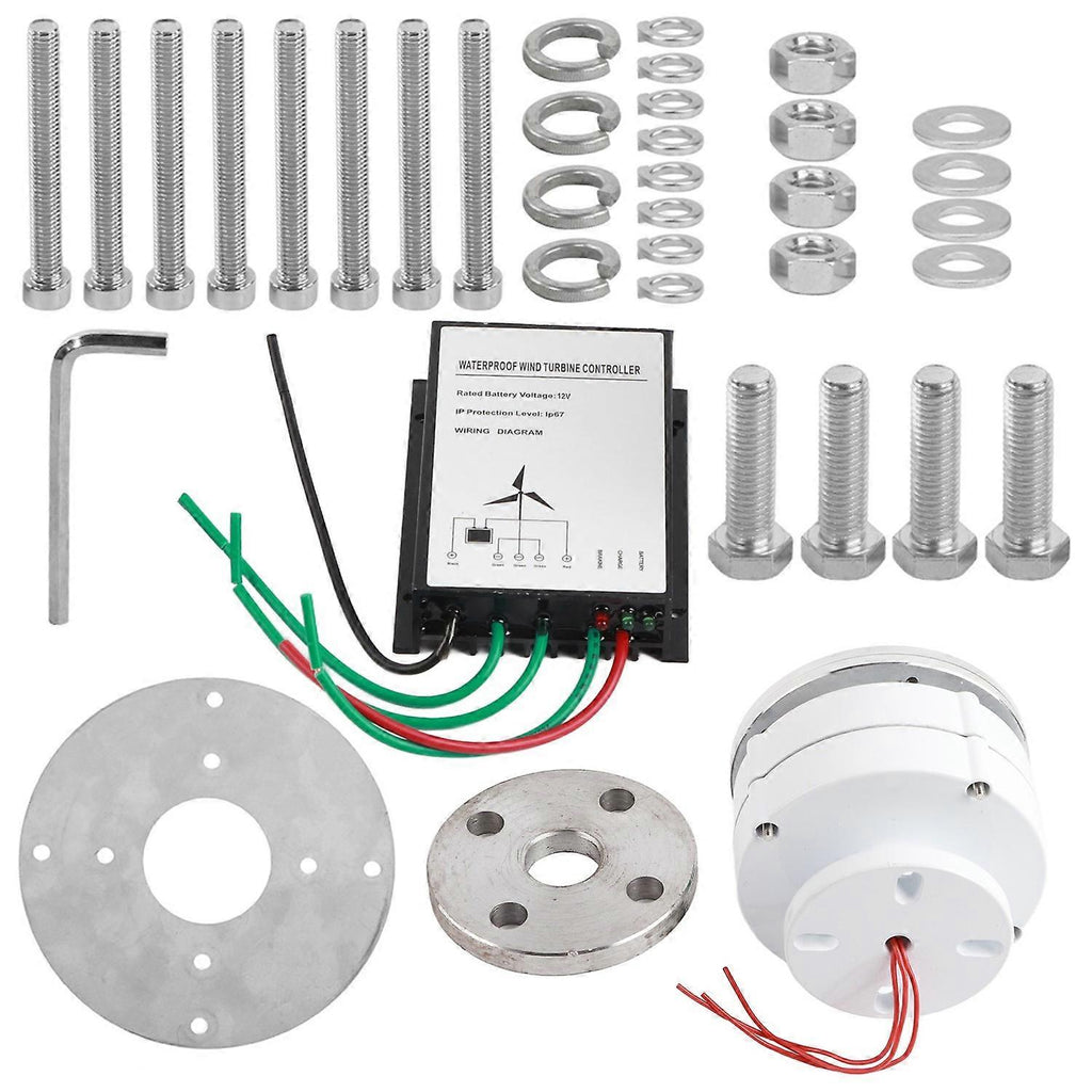 Feature: 1. The current and voltage regulation is effective, the wind energy utilization rate is high, and a good power generation rate is guaranteed. 2. These accessories are made of alloy steel and plastic materials, resistant to high temperature and abrasion, and can adapt to harsh environments. 3. The good matching characteristics of the wind turbine and the generator make the entire unit run more reliable. 4. The external rotor AC motor has a reasonable structure design, which can effectively reduce the wind resistance. 5. Widely used in ships, terraces, huts or streets, and solar and wind hybrid power generation systems. Specification: Item Type: Wind Turbine Kit Material: Alloy steel + plastic Rated Wind Speed: 12m/s Starting Wind Speed: 2m/s Safe Wind Speed: 45m/s Wind Wheel Diameter: Approx. 0.9m / 3ft Number of Blades: 4. Package List: 1 x Fastening Tool Kit4 x Blade1 x Wind Turbine1 x User Manual1 x Fixed Sheet1 x Gasket1 x Wrench1 x Controller Note: 1. When assembling, please place the generator, do not drop, knock, or touch, otherwise it may damage the product and affect the use.2. When connecting the controller, be sure to follow the wiring diagram on the controller to wire, otherwise the normal use of the product will be affected, and the product will be burnt in severe cases.3. After assembling, first confirm whether each screw is fixed well before using.4. Please note that the new type and old type of this product will be sent randomly, and make sure you will not mind before ordering.
