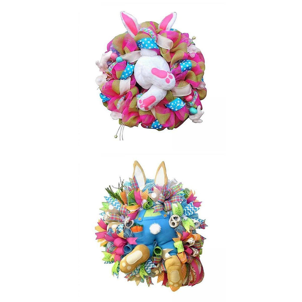 2pcs Spring Easter Bunny Door Hanger Wreath Rabbit Ribbon Home Wall Decor