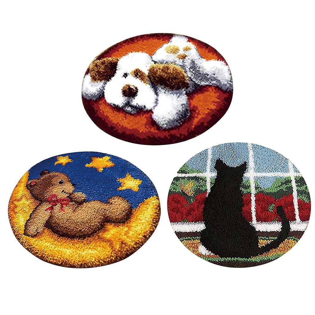 3 Sets DIY Latch Hook Rug Kits for Adults Animals Embroidery Carpet Cushion