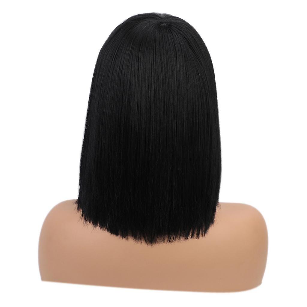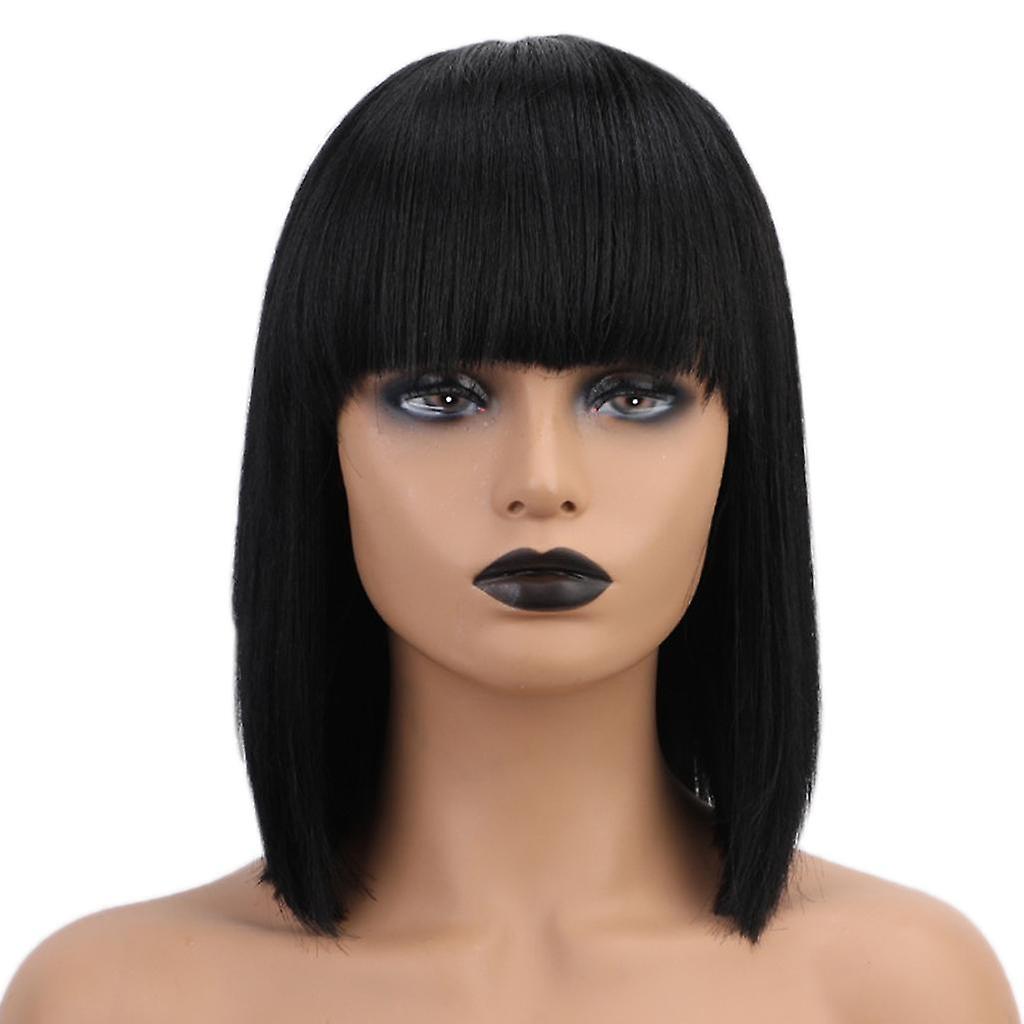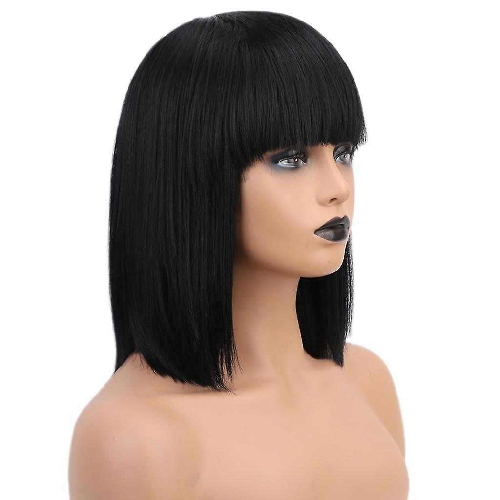 Natural Black Short Part Straight Wigs Human Hair Women Wigs with Flat Bangs