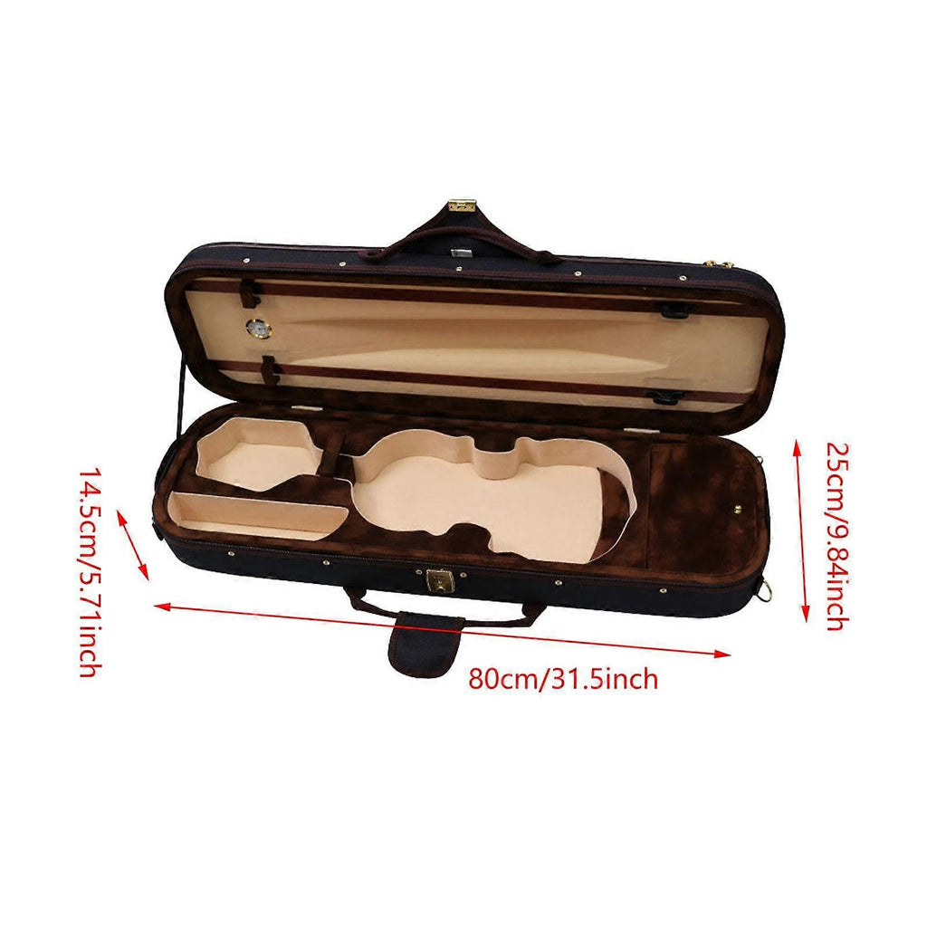 Description: Versatile and Convenient: This violin case is can be carried in three ways,as a backpack, single shoulder, or by hand. Design: The Violin Hard Case allows for various carrying, it can be carried by hand, on shoulder.Protection: The Carry violin hard case features padding to provide protection for your violin.Material: Made from Oxford cloth and foam, this 4/4 full size violin case is designed to long term use. Lightweight Design: The lightweight portable violin carrying bag is lightweight, portable. Specification: Material: Oxford cloth Foam Size Chart: 80cmx25cmx14.5cm/31.50inchx9.84inchx5.71inch Package Includes: 1 Violin Case