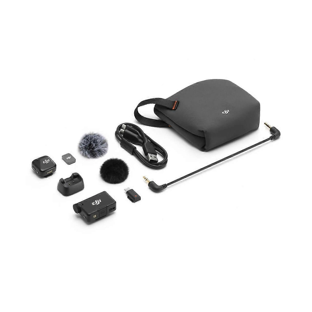 COMPATIBLE DJI Mic Mini (1 TX + 1 RX) 1. Small and light, no sense of wearing 2. High-quality audio, stable transmission 3. 10 hours of ultra-long battery life 4. Direct connection to DJI OsmoAudio products, original sound quality 5. Active noise reduction, two adjustable levels 6. Automatic limiter, anti-explosive sound Technical parameters: --DJI Mic Mini transmitter 1. Dimensions: 26.55 mm long, 26.06 mm wide, 15.96 mm high 2. Weight: about 10 grams (without magnetic sheet) 3. Wireless mode: GFSK 2Mbps 4. Equivalent isotropic radiated power (EIRP): less than 20 dBm 5. Wireless mode operating frequency: 2.4000 GHz to 2.4835 GHz 6. Bluetooth protocol: Bluetooth 5.3 7. Bluetooth operating frequency: 2.4000 GHz to 2.4835 GHz 8. Bluetooth transmission power (EIRP): less than 20 dBm 9. Battery type: Li-ion 10. Battery capacity: 114 mAh 11. Battery energy: 0.44 Wh 12. Battery voltage: 3.87 V 13. Charging specification: maximum 5 V 14. Charging environment temperature: 5- 45 degrees Celsius 15. Working environment temperature: -10- 45 degrees Celsius 16. Charging time: about 90 minutes 17. Working time: about 11.5 hours (using DJI Mic Mini (one transmit and one receive), without noise reduction function, in a non-interference environment, close-range sound reception, transmitter and receiver connected, and receiver connected to the camera with a 3.5 mm cable.) --DJI Mic Mini receiver 1. Dimensions: 46.50 mm long, 29.61 mm wide, 19.32 mm high 2. Weight: Approximately 17.8 grams (including interface cover) 3. Wireless mode: GFSK 2Mbps 4. Equivalent isotropic radiated power (EIRP): less than 20 dBm 5. Operating frequency: 2.4000 GHz to 2.4835 GHz 6. Bluetooth protocol: Bluetooth 5.3 7. Bluetooth transmit power (EIRP): less than 20 dBm 8. Bluetooth operating frequency: 2.4000 GHz to 2.4835 GHz 9. Battery type: Li-ion 10. Battery capacity: 170 mAh 11. Battery energy: 0.66 Wh 12. Battery volta