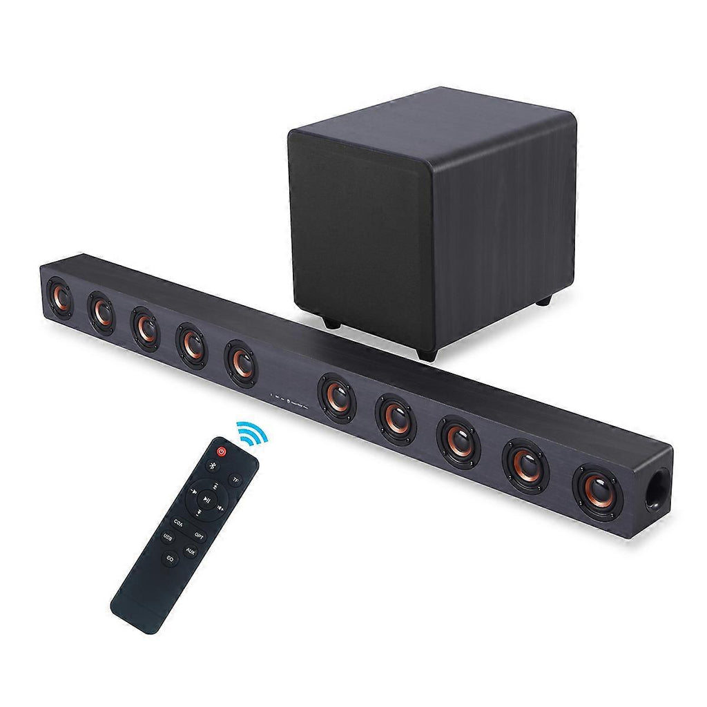D90 Home Theater Audio Echo Wall Soundbar Subwoofer Audio 1. Power: 50W 2. Operation mode: rotate 3. Connection mode: 3.5mm audio connection,TF card 4. Function: audio input; audio output 5. Power supply indicator: 220V power supply 6. Panel: mesh panel 7. Weight: 4.6kg 8. AUX input: plum blossom double-ended audio cable 9. Wooden box, simple design and beautiful appearance 10. 3D surround sound, bringing you a different hearing experience; 6 inch independent subwoofer, high power, deep bass, extraordinary effect 11. Compatible with Bluetooth devices such as mobile phonestabletscomputers, compatible with WindowsAppleAndroid and other systems, and compatible with various music playback software