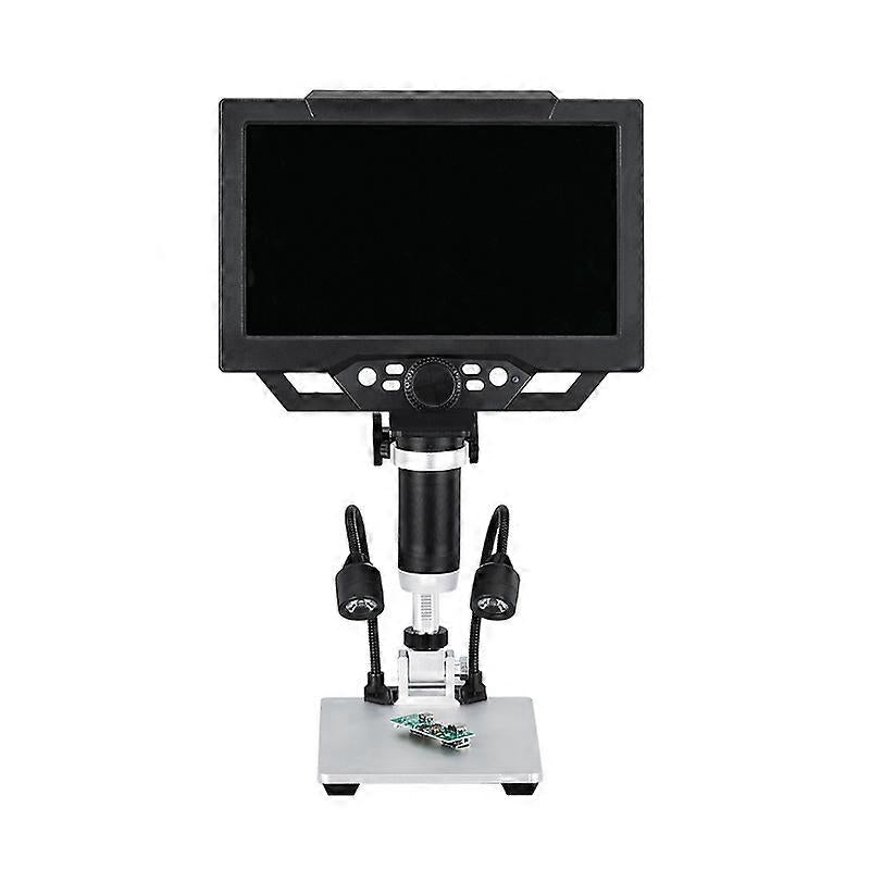 G1600 1-1600X Magnification 9 Inch Electron Microscope, Style: With Battery EU Plug 1. Pixel: HD 12 million pixels 2. Display: 9-inch LCD display 3. Magnification: 1-1600 times continuous magnification system 4. Object distance: 10mm or more (different object distances correspond to different magnifications) 5. Video format: AVI 6. Video pixels: up to 1080FHD 7. Video resolution: 1080FHD1080P, 720P 8. Photo format: JPG 9. Photo resolution: 12M10M8M5M3M 10. Contrast mode: manual focus 11. Light source: 8 LED lights (adjustable brightness) + external LED 12. Focusing range: 10-40mm (can watch the distant scenery) 13. Transmission mode: MicroUSB2.0 14. PC operating system: Win XPWin 7Win 8.1Win 10Mac OSx10.5 or higher 15. Sixteen language systems: English, Spanish, Russian, Korean, Japanese, Thai, Hebrew, Portuguese, German, French, Italian, Turkish, Czech, Polish, Traditional Chinese, Simplified Chinese 16. Application range: circuit board, repair, ore, fabric, skin, insects, hair, etc. 17. Power supply mode: direct plug charging (with battery model) 18. With battery model battery capacity: 5000mAh Features: 1. 1600 times magnification, high-definition zoom lens, 10-40mm focal length zoom, a broader range, object distance of 2 cm 2. 9 inch large screen, one imaging system, high-definition picture quality 3. lifting bracket, can be adjusted at will, using aluminum alloy, wear-resistant and durable 4. Thickened wear-resistant base, balanced non-slip, stable and convenient 5. With focus wheel, rotate left and right to adjust the clarity of imaging 6. Clearly engraved keys, easy to switch 7. Support SD card storage function 8. With LED adjustment knob, through the left and right rotation of the light intensity adjustment