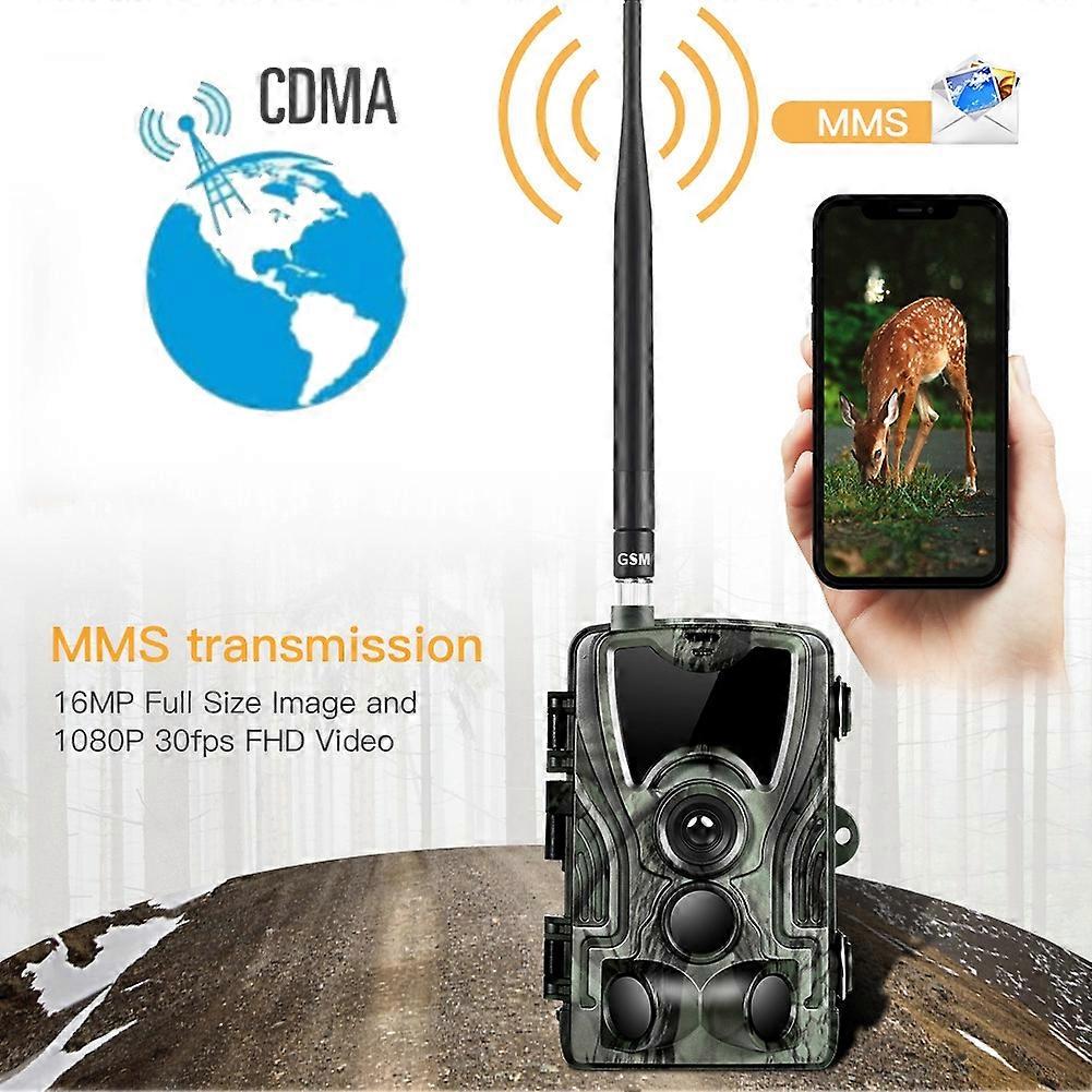 HC801G 3G WCDMA Waterproof IP66 IR Night Vision Security Hunting Trail Camera, 120 Degree PIR Angle 3G WCDM network 1. Photo resolution: 1 MP 12MP 8MP 2. File format: JPG 3. Time lapse mode: 5min 30min 60min 4. Multi-shot mode: Up to 9 photos per detection 5. Stamp (photo and video) - Date, time, temperature (degree C degree F) and phase 6. Capture mode: Color by day, black and white by night 7. Video resolution:1920 x 108030 fps (FHD) 8. File format: AVI H.264 9. Sequence Length:Adjustable from 10 to 90 11. Capture mode: Color by day, black and white by night 12. Audio Recording: N A (automatically recorded in video mode) 13. Internal Memory Support: None 14. External Memory: SD SDHC Card (up to 64GB), not included 15. Integrated display: 2.4 inch TFT 16. Alkaline or lithium batteries: 8x AA (not included) 17. Lithium Battery: Rechargeable Battery pack (LIT-801), not included 18. External (3.5X1.5mm jack): DC12V 1000mA (6V ~ 12V) 19. Detection system: - Motion sensor: 3xPIR - Detection angle: 120 degree - Detection Zone: Adjustable from 1 to 80 feet - Trigger speed: 0.3 sec - Delay between each detection: Adjustable from snapshot to 30 minutes 20. Night lighting system: - LED: 36 LEDs - Flash range: Less than 90 ft - Exposure: Automatic infrared level adjustment 21. Optical field of view: 120 degree 22. Size: 135mm x 90mm x 76mm 23. Operating temperature: -30 degree C to + 50 degree C 24. Temperature storage: -40 degree C to + 60 degree C