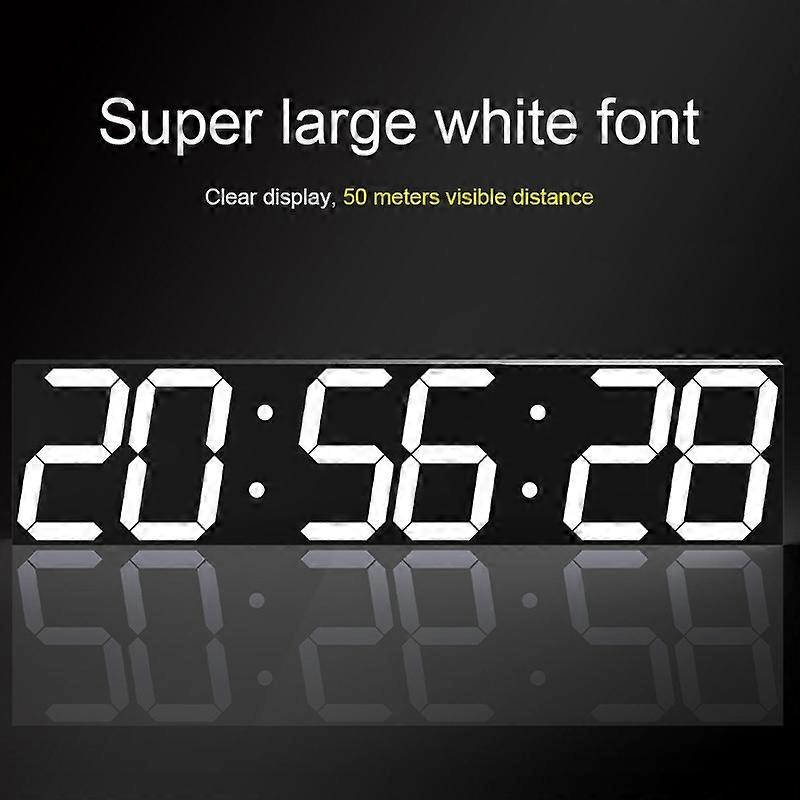 Multifunctional LED Wall Clock Creative Digital Clock 1. Weight: 1,200 grams for the hollow model and 1,700 grams for the sealed box model 2. Dimensions: Hollow section 66.5??15??1.5 cm, sealed box section 69.5??16??2 cm 3. Material: ABS, PVC, LED chip 4. Specifications: output voltage 6V DC, input voltage 100-240V, output current 1A, 4 digits display 4 digits hours and minutes, 6 digits display 6 digits, hours minutes and seconds 5. Functions: time, date, temperature, 16 groups of alarm clocks, countdown, countdown, auto-sensitivity, remote control of 20 meters (2 7th batteries need to be purchased by yourself) 6. Features: beautiful and practical, durable, moisture-proof and ventilated, large and bright fonts, energy saving and environmental protection, power-off memory function, various uses 7. Suitable places: living room, school, hotel, conference hall, gym, company, etc