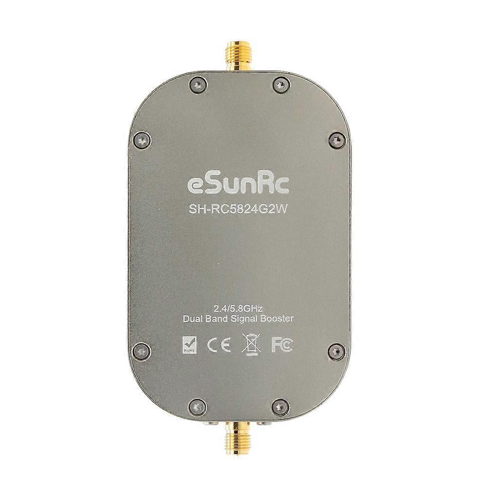 Sunhans eSunRC 2000mW 2.4GHz&5.8GHz Dual Band WiFi Booster 1. Material: cast aluminum 2. Booster model: SH-RC5824G2W 3. Operating frequency: 2.4-2.5 GHz, 5.0-5.875 GHz 4. Working mode: bidirectional, half-duplex, time division duplex, can sense radio frequency, carrier from transmitter, and automatically switch between receiving and transmitting modes. 5. Interface type: SMA socket 50ohm, 6. Connect to radio: SMA female (inner hole), 7. Connect to antenna: RP-SMA female (inner pin) 8. Input power: 0-20 dBm 9. Transmitting gain: 15-18dB 10. Output power: 2000mW (33dBm) 11. Receiving gain: about 12 dB 12. Noise figure: about 3.5 dB (typical value) 13. Frequency response: ???1dB within the working range 14. Support voltage: 5V~16V2A DC 15. Working temperature: -20 degrees Celsius to 70 degrees Celsius 16. Working humidity: up to 75% relative humidity 17. 2.4G and 5.8G dual-band, automatic frequency switching 18. Maximum 2000mW actual output power, support different power supplies 19. Aluminum alloy shell, CNC Fine processing, anti-interference 20. Lightweight and compact, can be easily installed on DJI drones, XIRO drones and remote controllers 21. Plug and play, no software installation required 22. Designed for drones, unmanned aircraft and remote control devices 23. Suitable for routers, IP cameras, remote control helicopters, remote control racing boats, Bluetooth, walkie-talkies