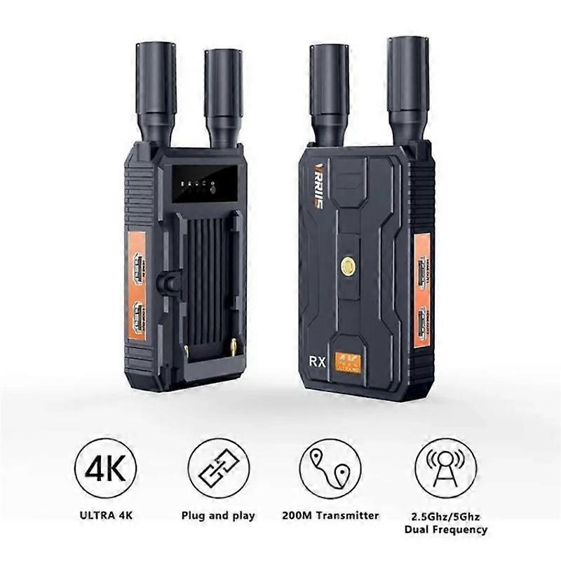 VRRIIS 097 4K HD Video HDMI Wireless Extender Kit Audio Video Wireless Transmitter Receiver 1.4K Ultra HD Transmission??Supports 4K UHD input and output, delivering high-definition video with stunning clarity for professional live streaming and broadcasting 2.200m Long-Distance Wireless Transmission??Provides stable and reliable signal transmission up to 200 meters in line-of-sight, ensuring seamless connectivity for outdoor and large-scale events 3.Dual-Band Auto Switching??Operates on both 2.4G and 5G frequencies with automatic switching, reducing interference and optimizing signal stability for smooth performance 4.Low Latency Audio & Video Sync??Features an ultra-low latency of just 0.1 seconds, ensuring real-time, synchronized audio and video for professional applications 5.Plug & Play, No Software Required??Simple plug-and-play setup with no software installation needed, making it easy to use for any live streaming or broadcasting setup 6.Versatile Compatibility & Multiple Outputs??The transmitter works with set-top boxes, computers, and cameras, while the receiver supports TVs, monitors, and projectors with dual HDMI output. Also supports 1-to-multiple transmission and cold shoe expansion for added flexibility Specifications: 1.Transmission distance: 200 meters 2.Frequency: 2.4G5GHz 3.Video encoding: H.265 4.Transmission delay: less than or equal 0.1 seconds 5.Input: 3840x2160P@30Hz backward compatible 6.Output: 3840x2160P@30Hz1920x1080P@60Hz 7.Loop output: 3840x2160P@30Hz1920x1080P@60Hz 8.Power supply: USB-C interface, DC 5V2A NP-F series rechargeable battery 9.Protocol standard: HDMI 1.4b, HDCP 1.4 10.Bit rate: 60Mbps 11.Material: PC+ABS+automotive aluminum alloy 12.Compatibility: Applicable to HDMI transmission port equipment