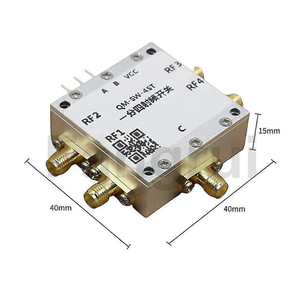 Fangrui Product Details Microwave Switch, Also Known As Radio Frequency Switch, Realizes The Function Of Controlling Microwave Signal Channel Conversion. This Module Adopts Sp4t Single-pole Four-throw Mode To Realize The Switching Of Four-way Signals. Because Of Its Low Insertion Loss, Wide Frequency Band, And High Isolation, It Is Widely Used In Communication System Equipment, Cnc Structures Are Used Shell, Easy To Install, Stable And Reliable Performance. Model:qm-sw-4st Working Frequency:0.1-6g Working Mode:choose Four From One Typical Insertion Loss:1db Port Isolation:45db Typical Value Impedance:50ohm Maximum Input Power:28dbm Switch Switching Time:150ns Power Supply:+3.3 To +5v With Mounting Positioning Holes Weight:80 Grams Control Method: Control Port A: L, Control Port B: L Rf Output To Rf1; Control Port A: H, Control Port B: L Rf Output To Rf2; Control Port A: L, Control Port B: H Rf Output To Rf3; Control Port A: H, Control Port B: H Rf Output To ; (external Voltage Control, H: 3.3-5v, L: 0v Or Ground) Due To Differ