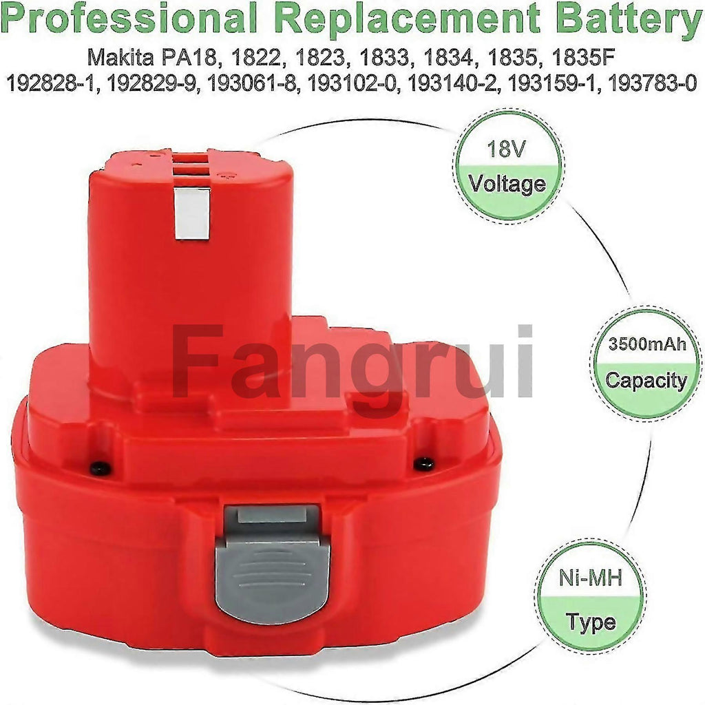Fangrui Product Details , High Quality Ni-mh Cells, 18 Volts, 3500mah, Compatible With Originals Charger. Compatible With Makita 18v Battery Pa18 1822 1823 1834 1835 192826-5 192827-3 192829-9 193159-1 193140-2 193102-0 4334d 5026da 5036da 5046da 6343d 6347d 8390d 8391d Fcc, Ce And Rohs Certified, No Pollution, No Memory Effect, Eco-friendly Ni-mh Battery Cells. Low Self-discharge, Can Be Charged Or Discharged As Needed Without Loss Of Capacity. Voltage: 18v Capacity: 3500mah Battery Type: Ni-mh Fit For:makita 4000 Series 4334d 4334dwa 4334dwae 4334dwd 4334dwde