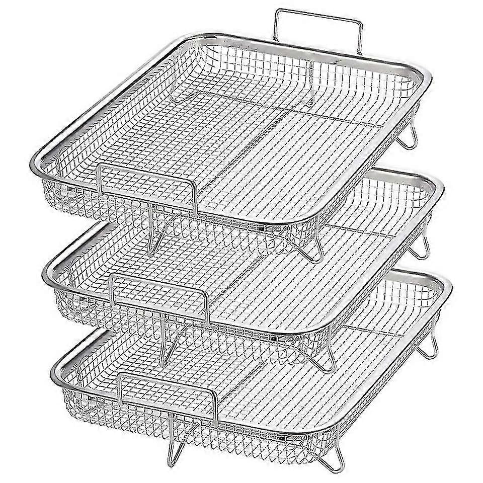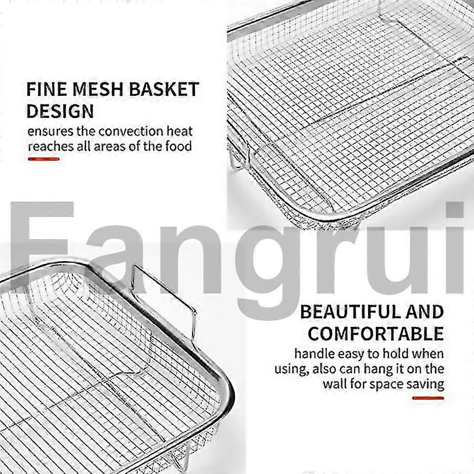 Fangrui Product Details [crispy And Even Heating]our Mesh Freshness Baskets Use 360 Degree Circulating Airflow To Ensure All-around Crispness Of The Food Being Cooked, Elevated Mesh Basket Makes Heat Circulate Around The Food Evenly, Cooking Crispy Result Without Burning. [non-toxic Dishwasher Safe]these Oven Racks Are Made With The Finest Quality, Highly Durable Food-grade Non-toxic Material, Heat Resistant 304 Stainless Steel Which Is Dishwasher Safe. [focus On Health]less Fat And Calories, No Or Less Seasoning, Oil, Or Butter Is Needed. Air Fry French Fries, Tater Tots, Mozzarella Sticks And Etc. Makes For Healthier Eating. A Nice Bacon Cooker For A Microwave Oven. [multi-use]nest The Baking Tray Underneath To Catch C Bs And Drips. The Oven Air Fryer Basket Is Also The Cooling Rack For Cooking And Baking, Grill Basket, Also Fruits And Vegetable Drain Basket Also Can Place Tableware And Cups. [package Contents] 3 X Crisper Basket Only. Assist Grip Handles To Help Easily To Hold The Air Fryer Basket When Using It, Whe