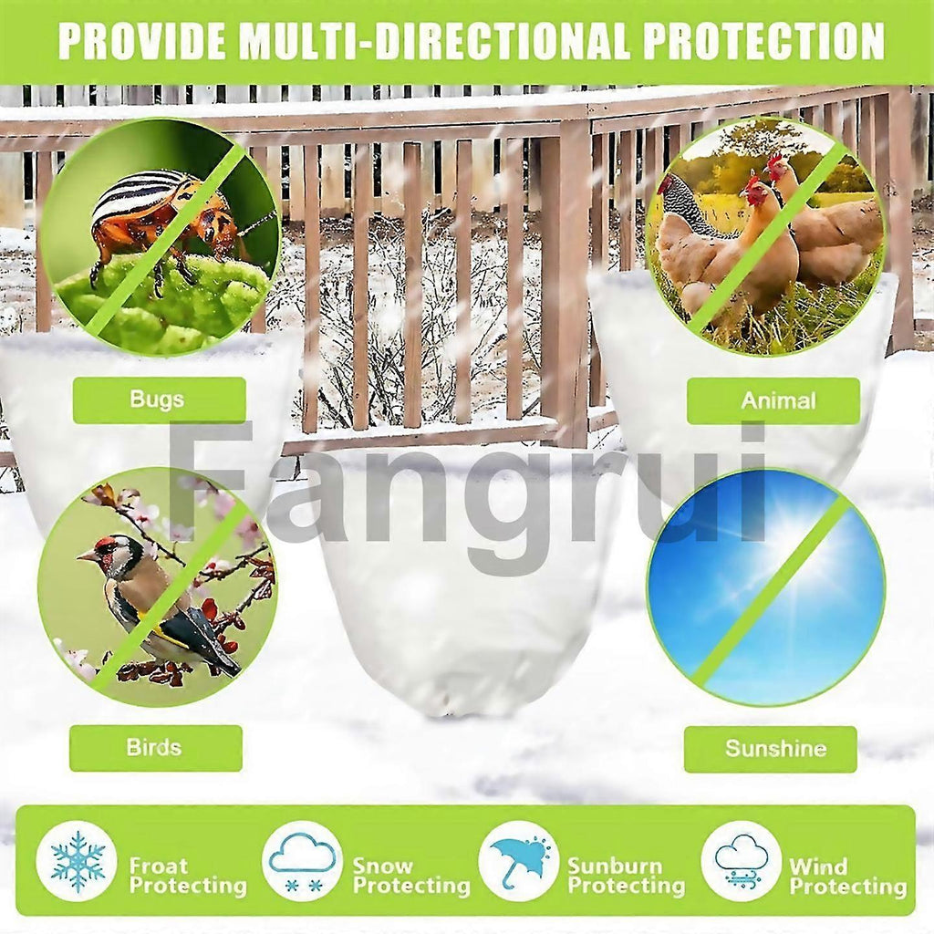 Fangrui Product Details Premium Breathable Material - The Winter Plant Covers Are Made Of Quality And Breathable Non-woven Fabric.not Only Protect A Plant From Cold Air,birds, Insects, Other Eating,but Also Make Plants Breathe Smoothly And Obtain Sufficient Sunlight And Moisture. 4 Pcs Plant Covers - You Receive 4pcs White Anti-freezing Bag,each Measures . 120x180cm, Large Enough To Meet Your Needs,also A Great Gift For Aspiring Gardener Or Plant Enthusiast, Making It For Plant Use. Drawstring Design - This Style Of Plant Protection Bag Adjustable Drawstring Design On The Bottom,which Is Easy To Use And Keep The Plant Protector Secure On The Plant, Protecting Plants From Wind, Frost And Severe Weather. Simple Application - Simple Slip The Plant Cover Over The Plants Foliage And Then Tighten The Drawstring Around The Plants Stem, It Can Be Repeatedly Used With Proper Care,you Are Not Need To Be Replaced Every Night Or Removed Every Morning. Versatile Application - A Convenient Way To Provide Frost And Cold Protec