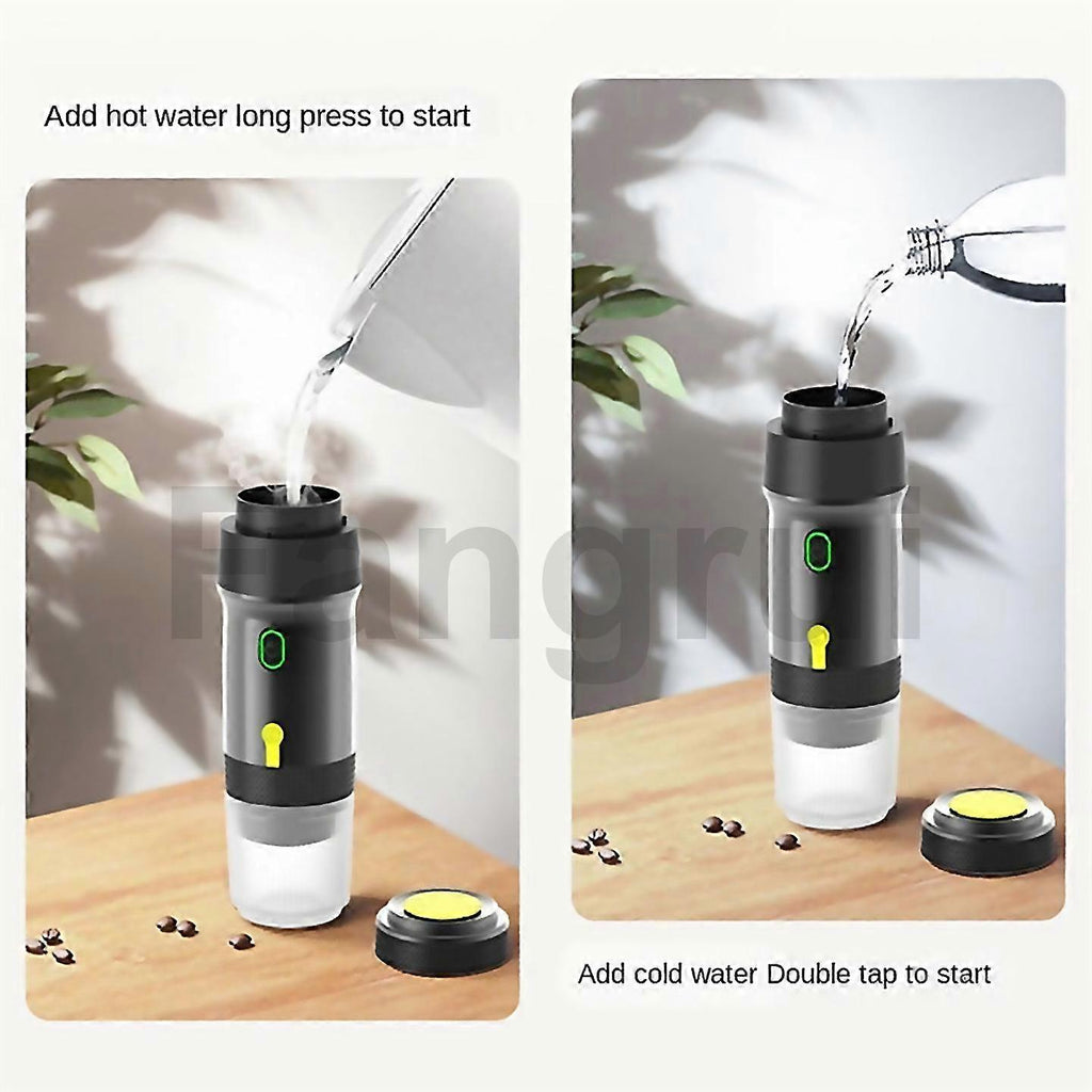 Fangrui Product Details 1. Versatile Compatibility: The Portable Italian Espresso Machine Features A Multifunctional 3-in-1 Design That Accommodates Both Small And Large Capsules, As Well As Ground Coffee, Offering Multiple Brewing Options To Suit Your Preferences. 2. Portable And Convenient: This Electric Wireless Heating Coffee Machine Is And Easy To Carry, Making It The Choice . Enjoy Your Favorite Coffee Anywhere, Anytime With This Convenient Travel Companion. 3. Smart Extraction: Equipped With Intelligent Heating Functionality, The Travel Coffee Maker Allows For Quick And Convenient Extraction By Simply Double-clicking The Power Button. Enjoy A Seamless Coffee-making Experience. 4. Multiple Charging Methods: The Coffee Maker Comes With Versatile Charging Options, Including Car Charger And Usb-dc Power, Ensuring Flexibility And Convenience When You Need To Recharge. 5. Easy To Clean And Disassemble: Designed With Detachable Components, The Electric Espresso Machine Is Easy To Clean, Ensuring Hygiene And . Keep Your