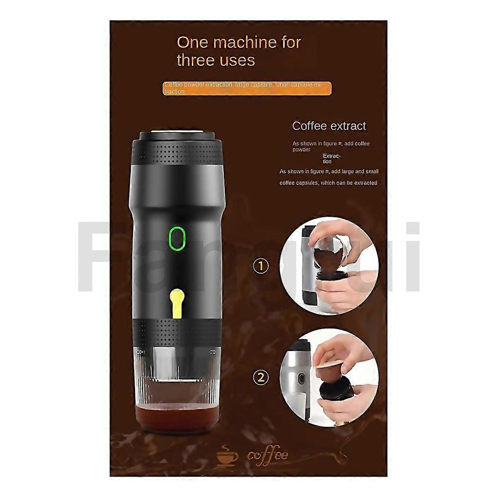 Fangrui Product Details 1. Versatile Compatibility: The Portable Italian Espresso Machine Features A Multifunctional 3-in-1 Design That Accommodates Both Small And Large Capsules, As Well As Ground Coffee, Offering Multiple Brewing Options To Suit Your Preferences. 2. Portable And Convenient: This Electric Wireless Heating Coffee Machine Is And Easy To Carry, Making It The Choice . Enjoy Your Favorite Coffee Anywhere, Anytime With This Convenient Travel Companion. 3. Smart Extraction: Equipped With Intelligent Heating Functionality, The Travel Coffee Maker Allows For Quick And Convenient Extraction By Simply Double-clicking The Power Button. Enjoy A Seamless Coffee-making Experience. 4. Multiple Charging Methods: The Coffee Maker Comes With Versatile Charging Options, Including Car Charger And Usb-dc Power, Ensuring Flexibility And Convenience When You Need To Recharge. 5. Easy To Clean And Disassemble: Designed With Detachable Components, The Electric Espresso Machine Is Easy To Clean, Ensuring Hygiene And . Keep Your