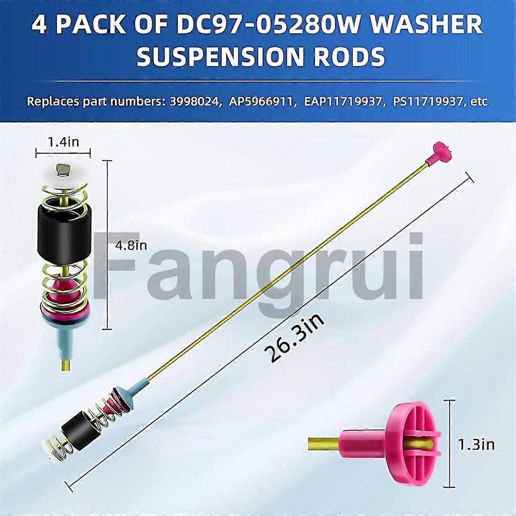 Fangrui Product Details Fangrui Product Details [ Replaces Part Numbers]:washer Machine Suspension Rods Parts Dc97-05280w Compatible With For - Washer Suspension Rods, Dc97-05280u, Dc97-05280h,dc97-16350v Dc97-05280k, Dc97-05280x, Dc97-16350c, Dc97-16350d, Dc97-16350e, Dc97-16350j, Dc97-16350k, Dc97-16350s, Dc97-16350t, Dc97-16350u, Dc97-18610b, Dc97-18610c, Ap5623264, Ap5669739, Ps4221572,ps4276369, Ps11719937, Ap5966911 [wide Compatible]:our Dc97-05280w Washer Suspension Rods Fit For - Smart Washing Machine Model: Wa400pjhdwr,wa40j3000aw,wa45h7200aw,wa45h7000ap,wa45m7050aw,wa422prhdwr, Wa54m8750av/a4, Wa45n3050aw/a4, Wa45t3200aw/a4, Wa50t5300ac/us, Etc [easy To Install]:before Installing Dc97-05280w Washing Machine Parts, Please Turn Off The Power And Water Supply, And Wear Gloves To Protect Your Hands. To Facilitate Your Installation, We Strongly Recommend That You Use A Screwdriver And Duct Tape When Installing, Note:washer Suspension Rods Wa50r5200aw Are Oiled, You Need To Wear Rubber Gloves During Installation, Which Dirty Your Hands. Pl