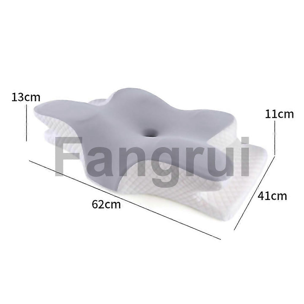 Fangrui Product Details Fangrui Product Details Material: The Material Of This Cervical Pillow Pillow Is Polyurethane Memory Foam, The Outer Coat Material Is Polyester Fiber + Lyocell Fiber, And The Inner Cover Material Is White Sweatcloth, Which Is High Quality And Durable Size: The Size Of This Cervical Pillow Is 62x41x11x13cm, Both Ends Can Sleep, High And Low Pillow Surface Can Be Freely Selected, 8cm Low Pillow Area Is Recommended For People Below 165cm Or Like To Sleep On Their Backs, 10cm High Pillow Area Is Recommended For People Above 165cm Or Like To Sleep On The Side Armrest Design: This Cervical Pillow Features An Armrest Design To Provide A Natural Resting Position For Your Arm And Eliminate Arm Numbness. The Unique Butterfly Pillow Design Provides Plenty Of Space For Your Neck And Shoulders. High-quality Slow Rebound Function: This Cervical Pillow Can Effectively Sense The Weight Of The Head Within 3-8 Seconds To Support The Neck And Sink Down To The Suspended Sleep Position, Care For The Cervical Spine, Avoid Secondary Damage, Maintain